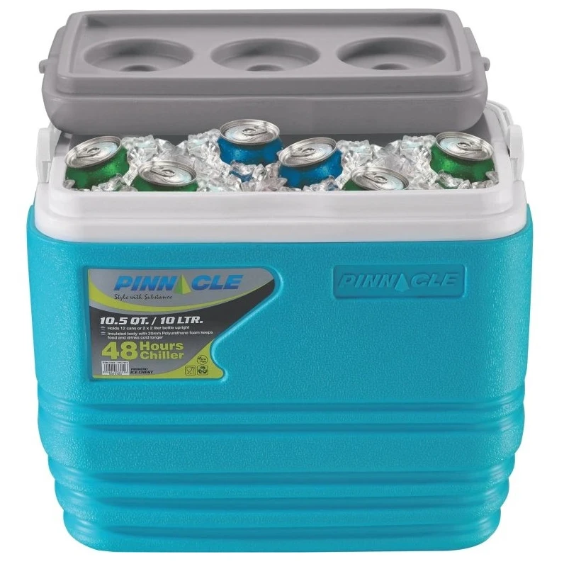 Die Kühlbox Primero 10L von Pinnacle ist mit 20 mm starkem Polyurethanschaum gefüllt, der eine hervorragende Wärmeisolierung gewährleistet und Ihre Getränke und Lebensmittel stundenlang kühl/warm hält. Die leichte Konstruktion und die weichen Griffe sorgen für einen einfachen Transport auch über längere Strecken. Der Deckel der Box kann als Arbeitsfläche oder Tisch mit praktischen Getränkehaltern dienen, die das Umkippen von Dosen oder Bechern verhindern. Hergestellt aus hochwertigem Kunststoff ohne BPA, der leicht zu reinigen und sicher für den Kontakt mit Lebensmitteln ist.