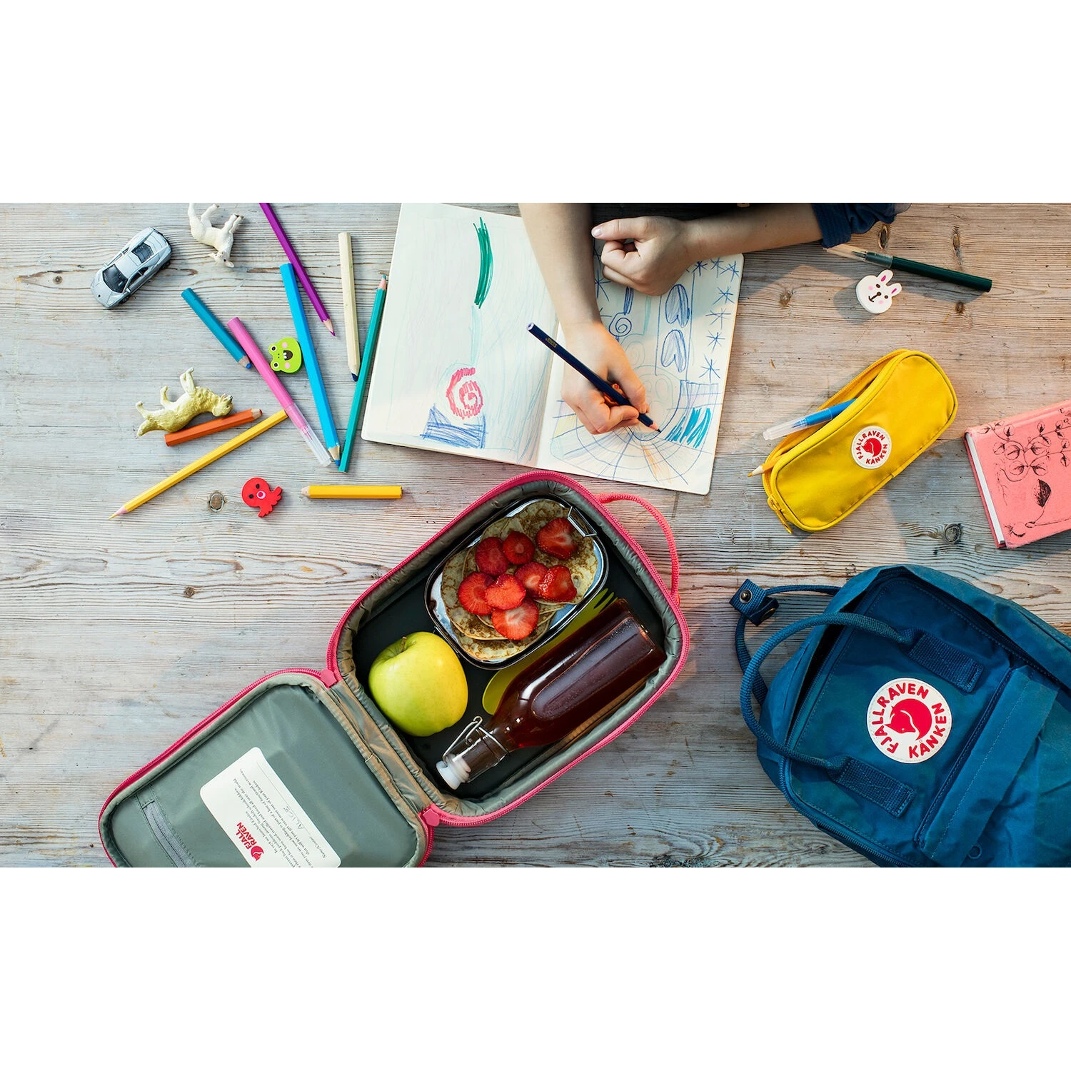 Die praktische Kånken Mini-Kühltasche von Fjällräven besteht aus strapazierfähigem gewachstem Stoff G-1000 HeavyDuty Eco S für die praktische Aufbewahrung von kalten Getränken und Snacks. Durch das Wachsen wird der Inhalt vor Feuchtigkeit und Schmutz geschützt. Die Tasche wird ohne Chemikalien hergestellt und ist zudem schnelltrocknend. Die Tasche ist für Schule, Arbeit und Reisen geeignet.