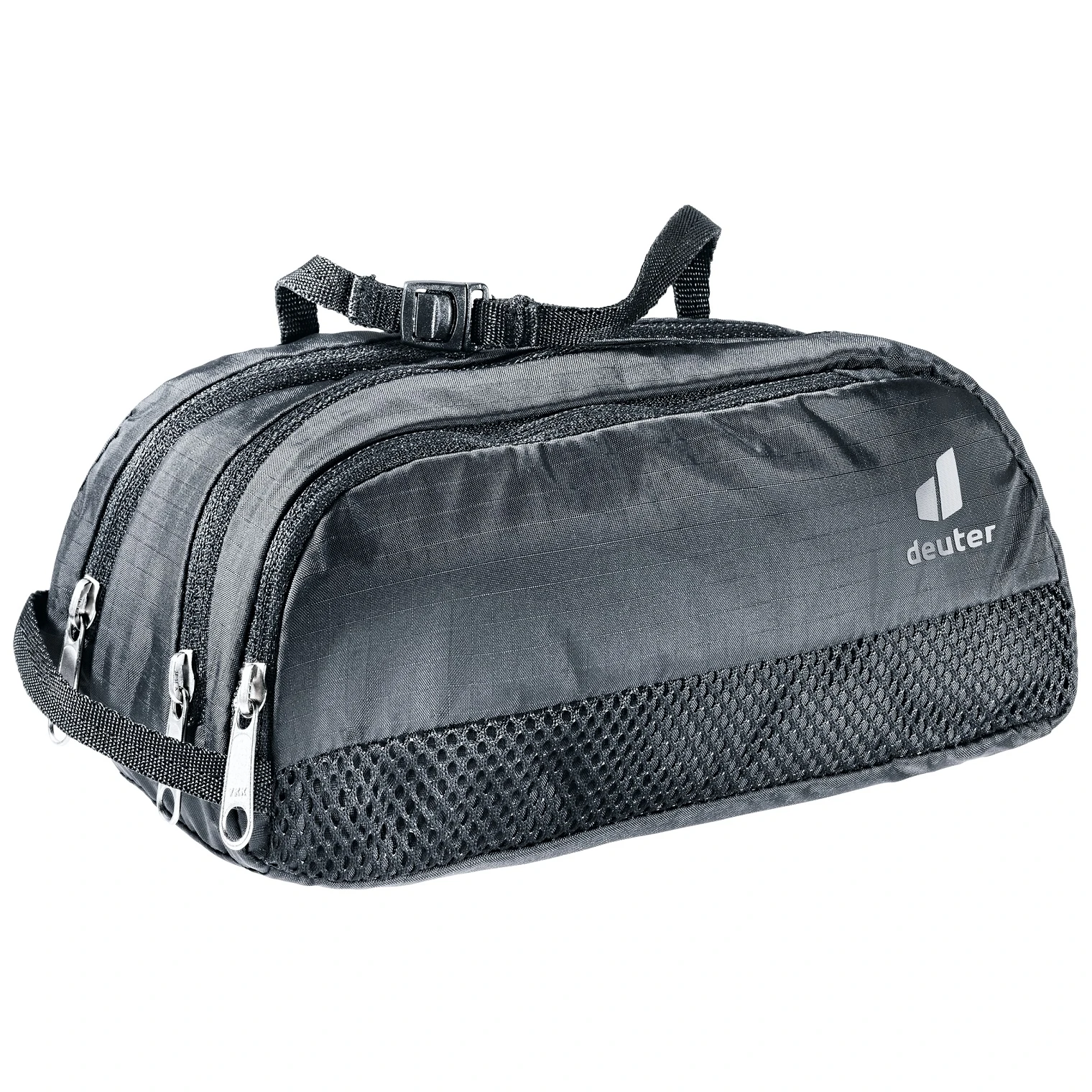 Leichter Kulturbeutel Wash Bag Tour II der Marke Deuter für Hygieneartikel, in dem alles Platz findet, was Du auf Reisen brauchst. Es verfügt über eine praktische Außentasche aus Netzmaterial mit Reißverschluss für eine Zahnbürste und einen Aufhängegurt mit Schnalle.