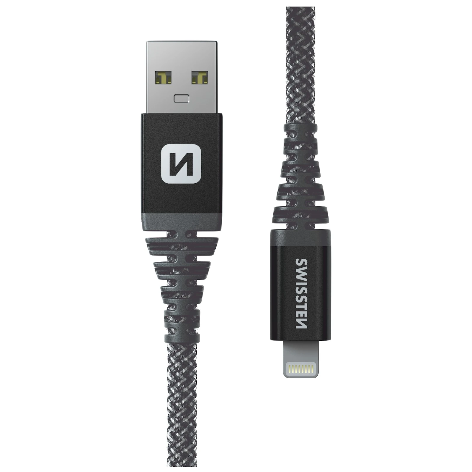 Extrem langlebiges Lade- und Datenkabel, das schnelles Laden unterstützt, dies ist Swissten Kevlar USB/Lightning 1,5 m