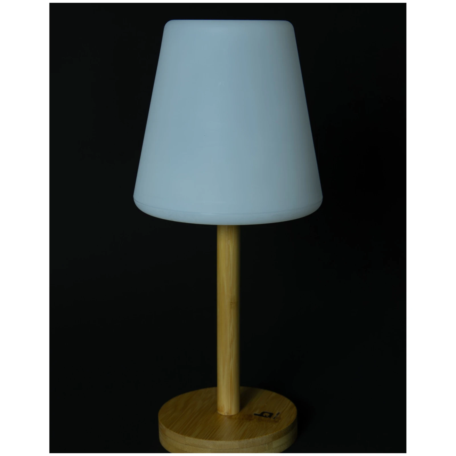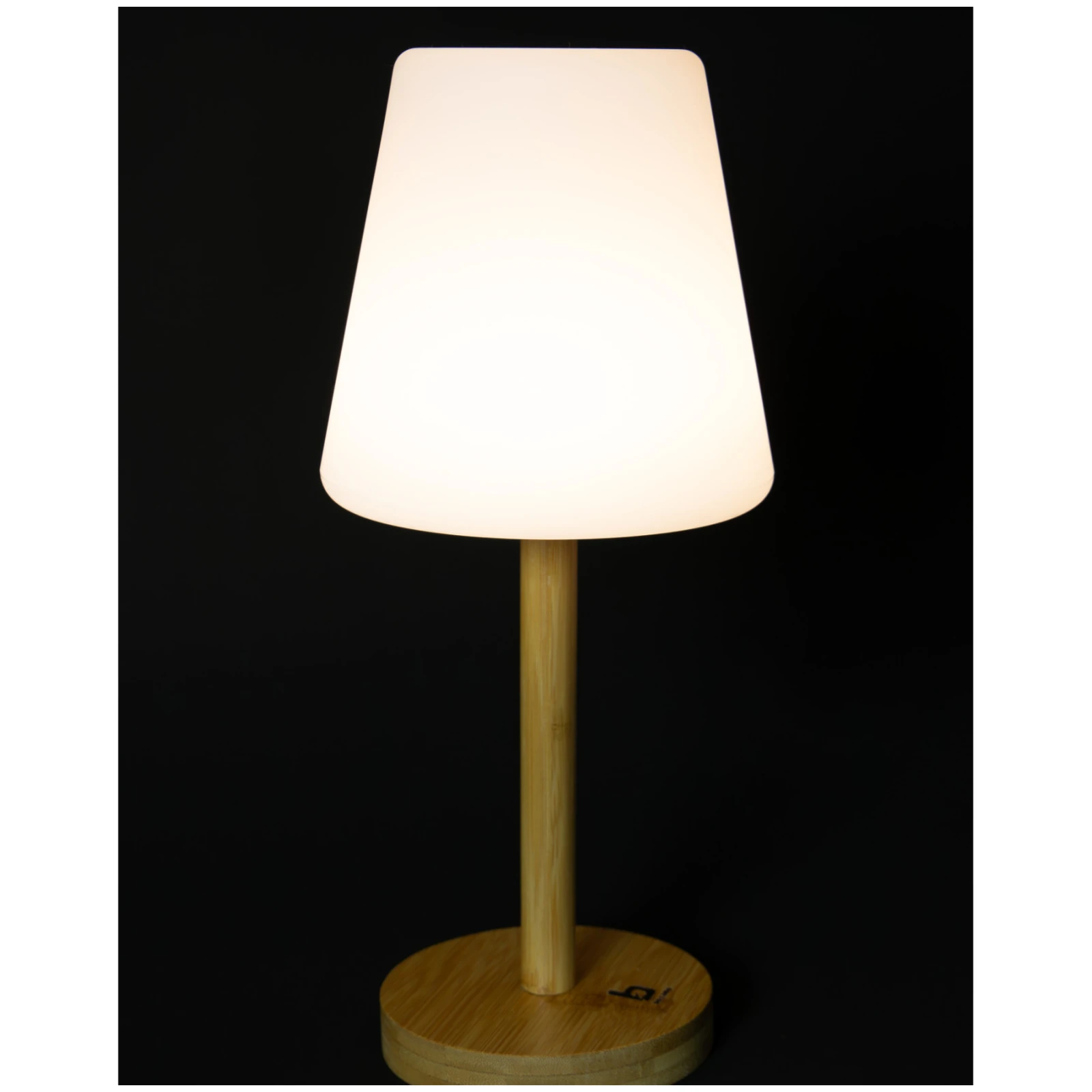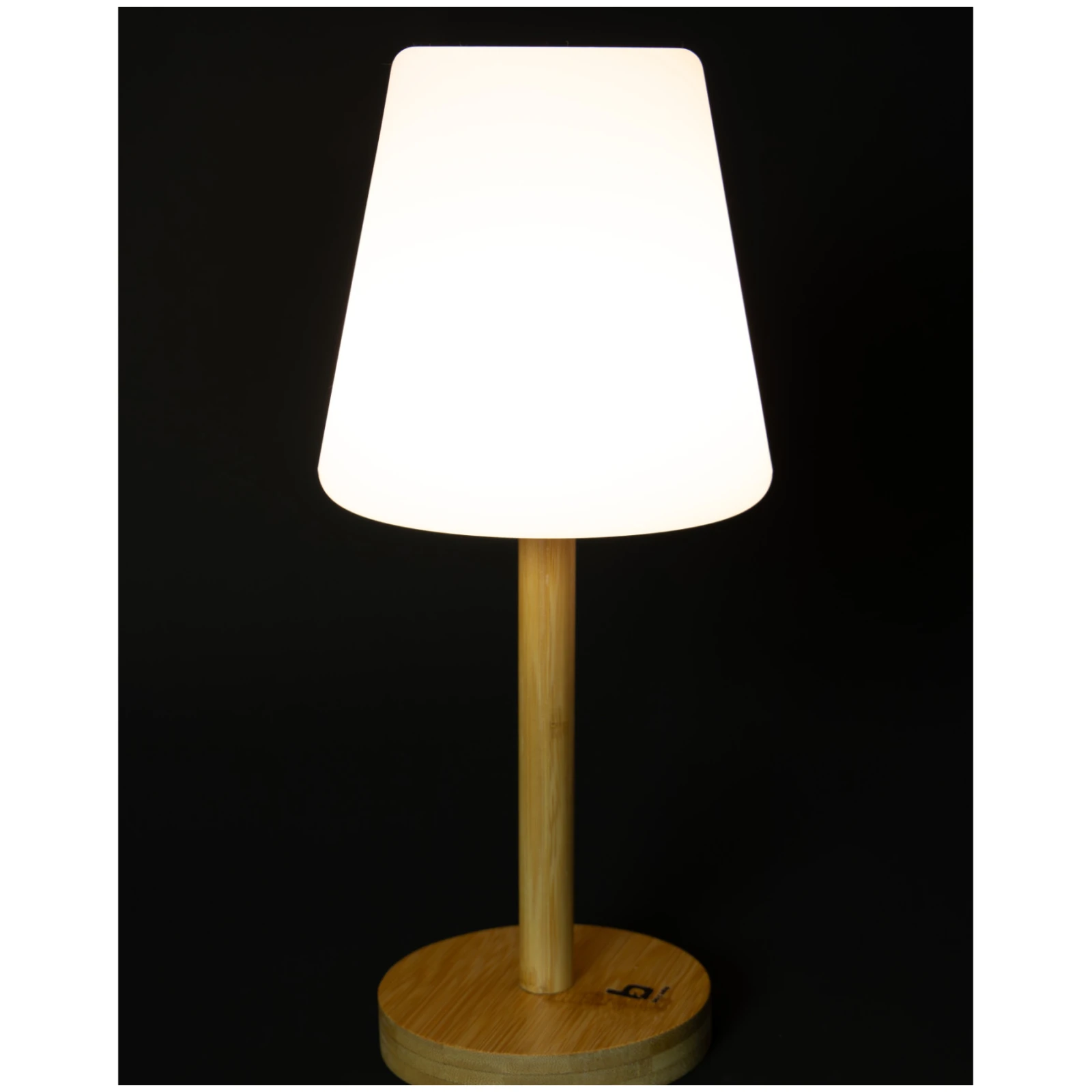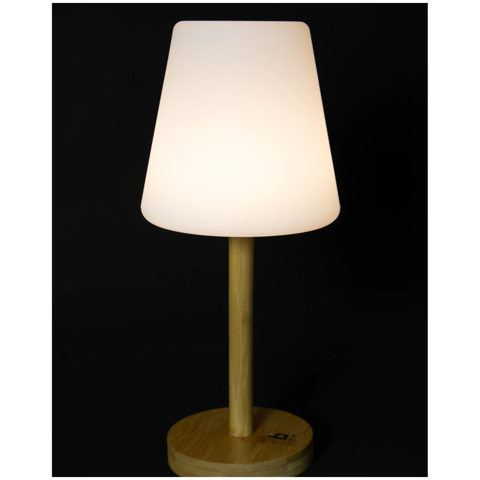 Die Cambridge L Tischleuchte von Bo-Camp vereint traditionelles Design mit modernen Elementen. Mit seinem Sockel aus Bambus und der eleganten, mattweißen Abdeckung sieht er in jeder Umgebung stilvoll aus – egal, ob Sie ihn zu Hause, im Garten oder beim Camping verwenden.
