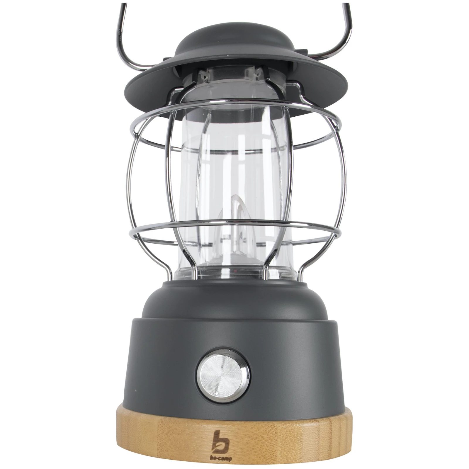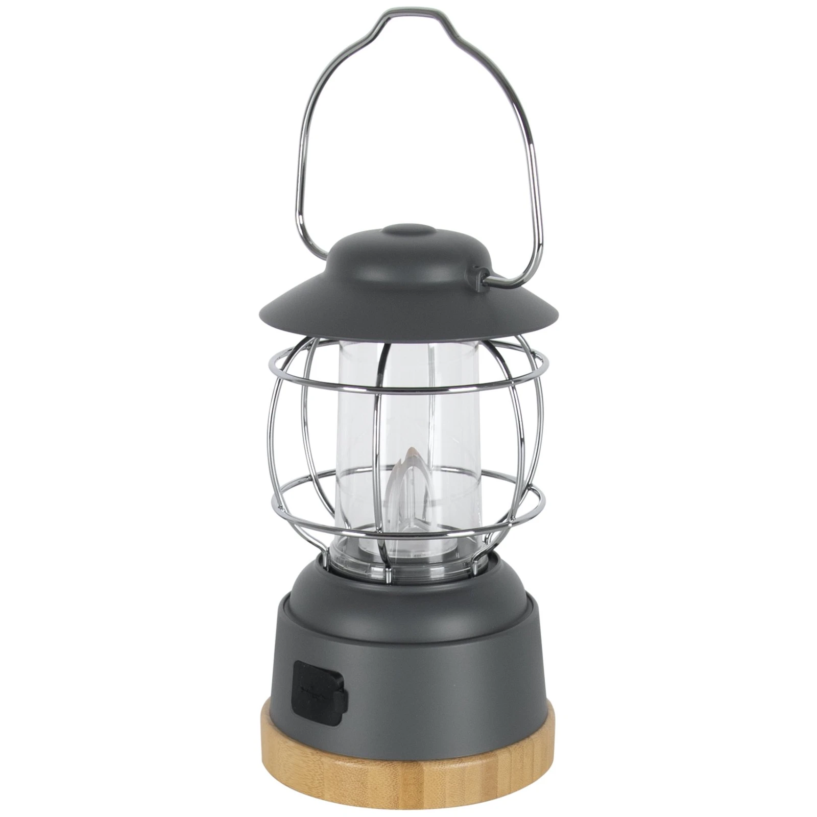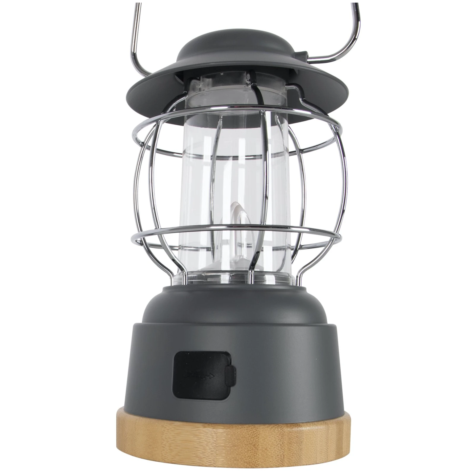 Attraktive wiederaufladbare Tisch- Laterne Sloane der Firma Bo-Camp im stylischen Outdoor-Look. Sie sorgt für angenehmes Licht dank warmweißer LED-Beleuchtung mit stufenloser Dimmfunktion. Ausgestattet mit Bambussockel, Kunststoffgehäuse und Tragegriff. Der eingebaute Li-Ionen-Akku kann mit dem mitgelieferten USB-Kabel aufgeladen werden. Ideal für einen Tisch, einen Schrank oder zum Aufhängen.
