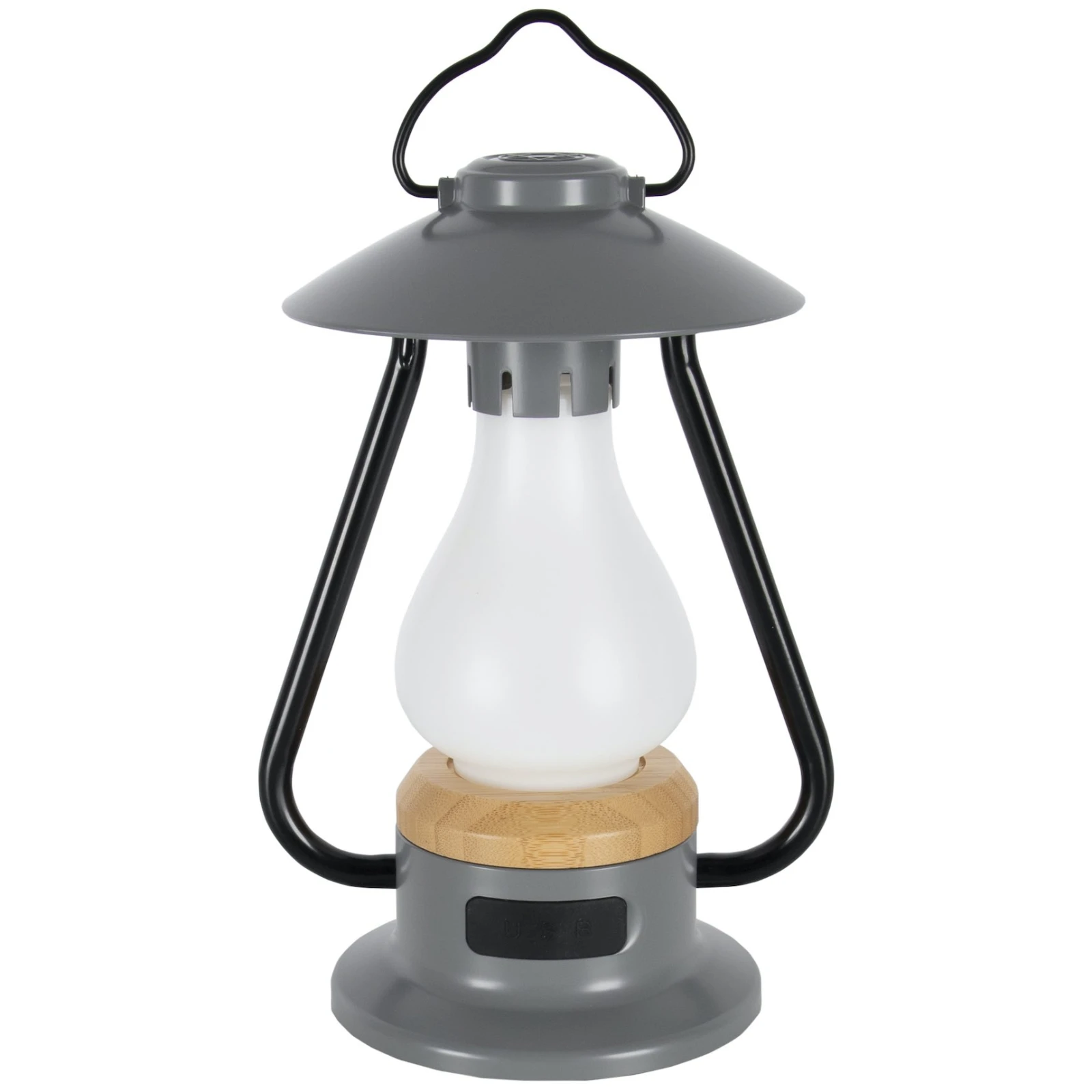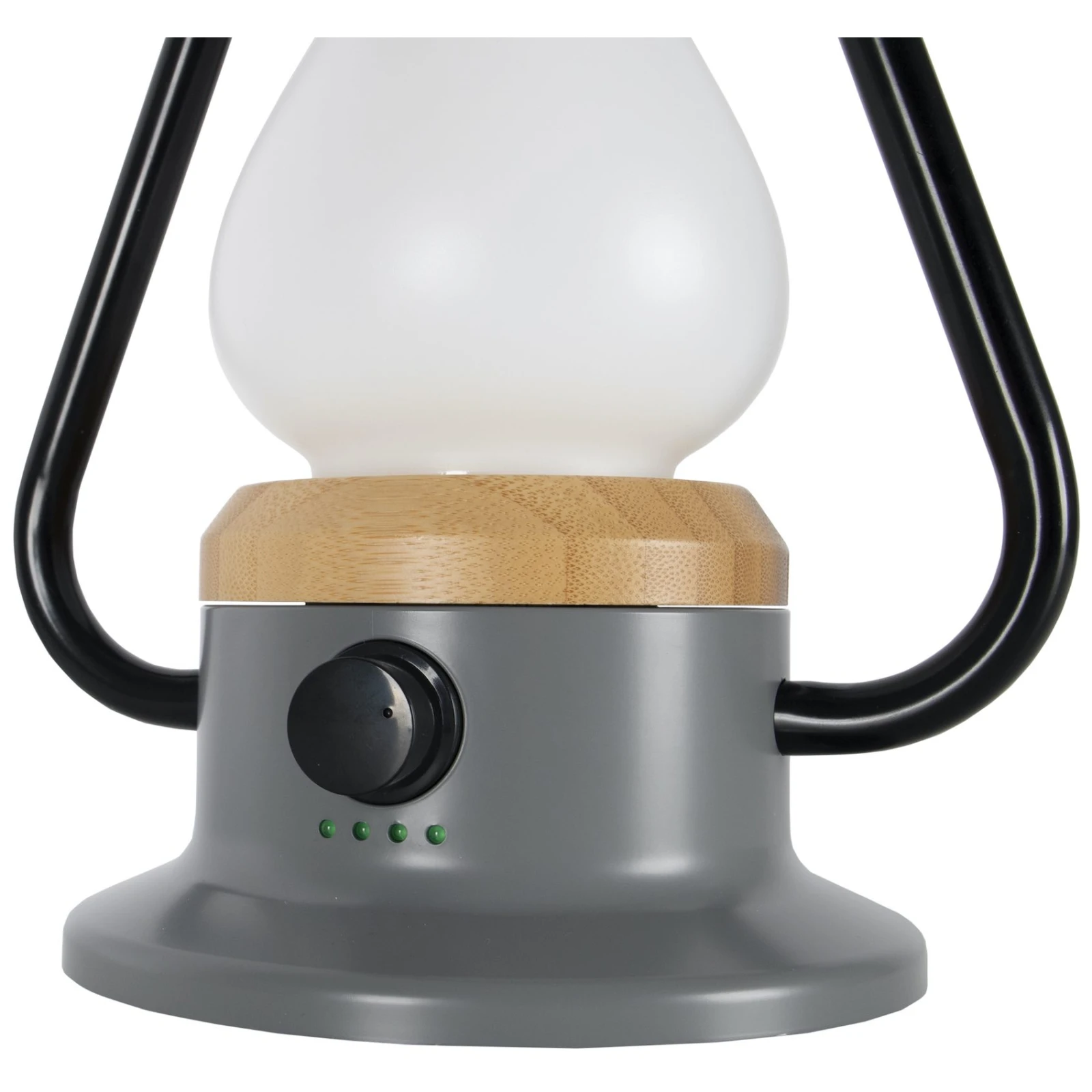 Attraktive wiederaufladbare Tisch- Laterne Woolton vom Hersteller Bo-Camp im stylischen Outdoor-Look. Sie sorgt für angenehmes Licht dank warmweißer LED-Beleuchtung mit stufenloser Dimmfunktion. Ausgestattet mit Bambussockel, Kunststoffgehäuse und Tragegriff. Der eingebaute Li-Ionen-Akku kann mit dem mitgelieferten USB-Kabel aufgeladen werden. Ideal für einen Tisch, einen Schrank oder zum Aufhängen.