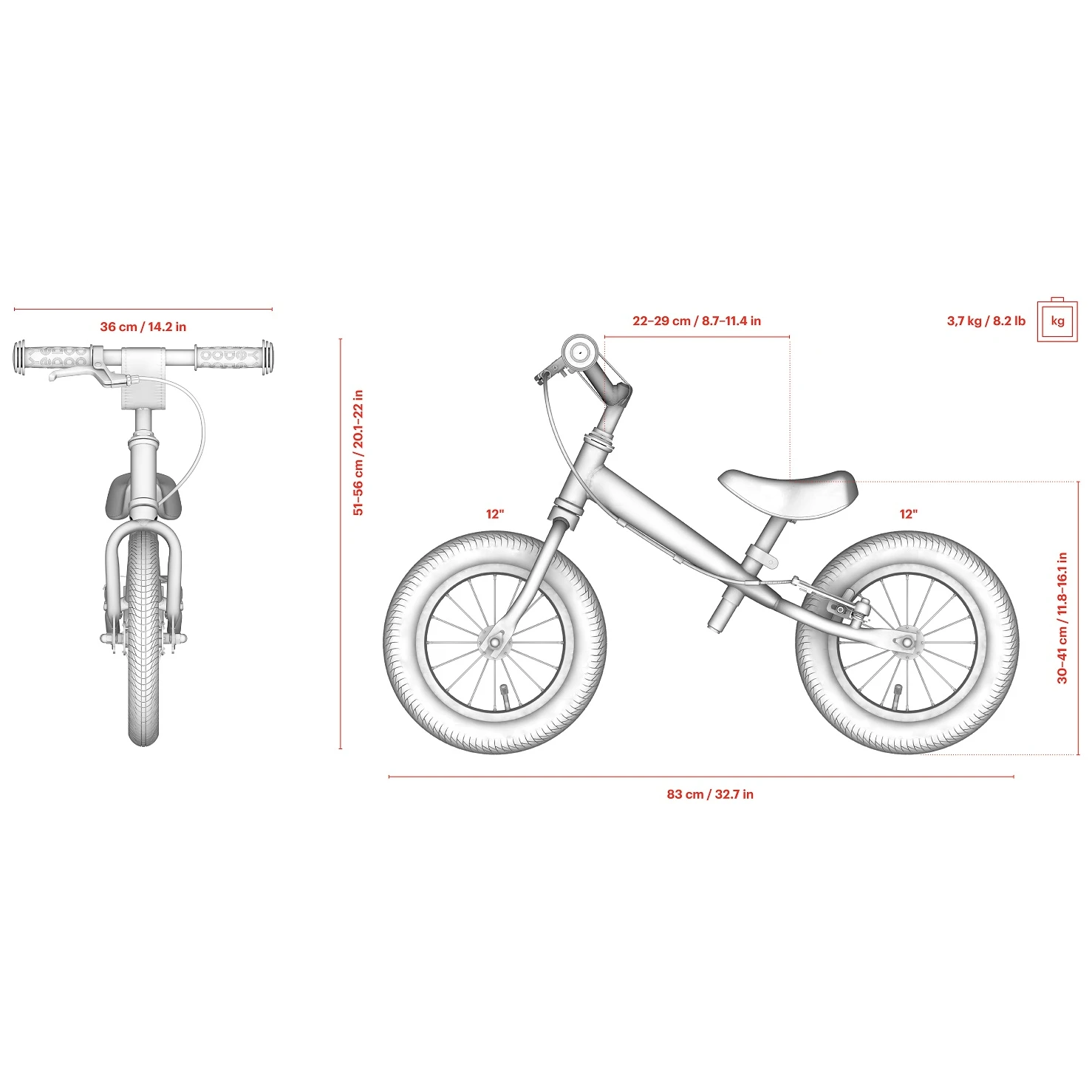 - 12"/12" Räder mit luftgefüllten Reifen meistern jedes Gelände sicher