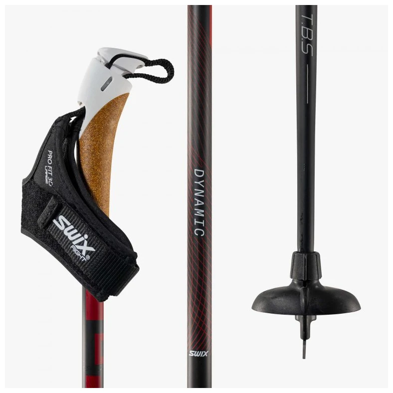 Dynamic D1 Swix Laufstöcke für alle Sportler bieten einfache Handhabung, einen Carbonkörper, einen angenehmen Griff dank PCU-Griff, eine Profit 3D Schlaufe und ein TBS-System für einfachen Plattenwechsel.