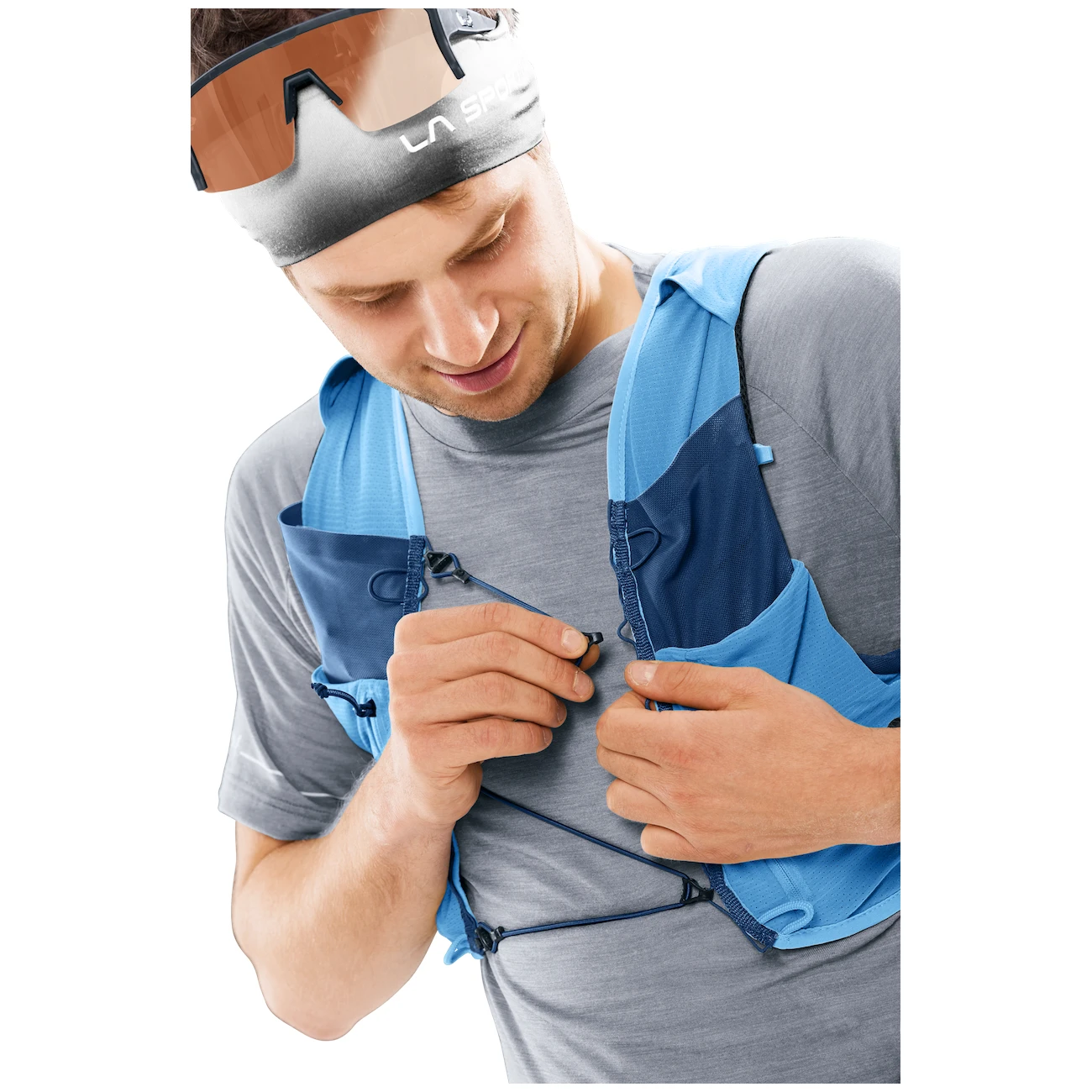 Ein großer Vorteil ist der enganliegende Schnitt mit Null-Reflexionen. Das Bungee-Brustgurtsystem ermöglicht eine präzise Anpassung und schnelle Befestigung, während gleichzeitig der Freiraum zum Atmen erhalten bleibt.