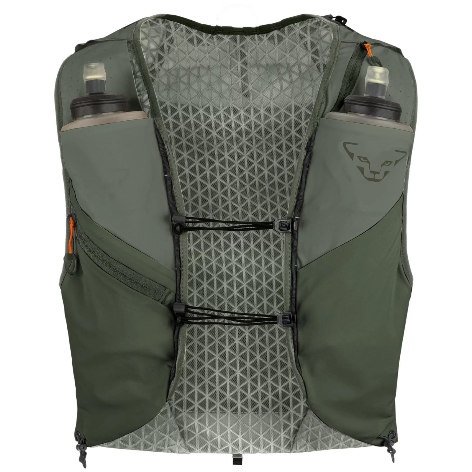Die leichte vielseitige Laufweste Alpine 15 von Dynafit sitzt wie eine zweite Haut und bietet großzügigen Platz für die Ausrüstung und eine clevere Fächeraufteilung, sodass du leicht den Überblick behältst. Die Hauptkammer auf der Rückseite ist in zwei überlappende Kammern unterteilt. Das weiter hinten liegende Fach ist sowohl über den oberen als auch über den unteren Reißverschluss zugänglich. Die zweite Kammer hat auch einen Eingang von unten. Darüber hinaus verfügt der Alpine 15 über mehrere Stretchtaschen an den Seiten und auf der Rückseite zur Aufbewahrung kleiner Gegenstände.