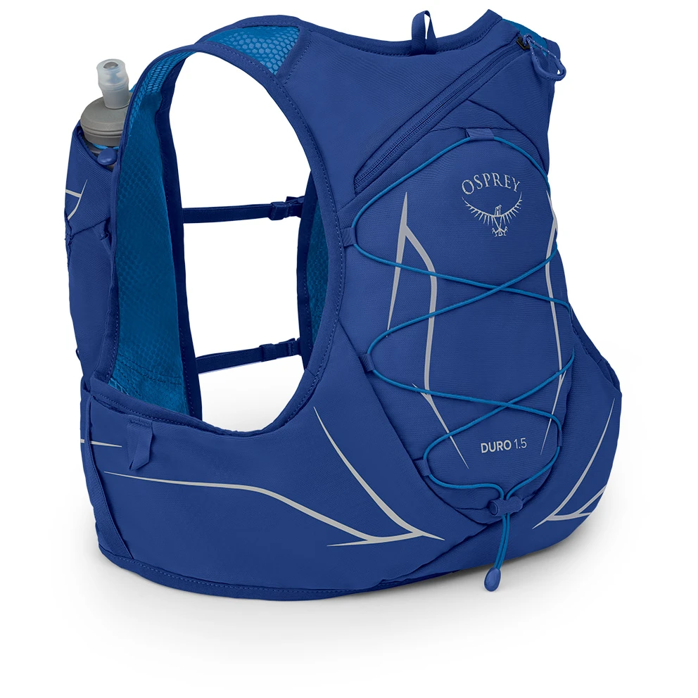 Der Duro 1. 5 Laufrucksack des Herstellers Osprey wurde zum Laufen konzipiert, ideal für alle, die gerne schnell und mit leichtem Gepäck laufen. Dieser Rucksack im Westenstil ermöglicht bequemes Tragen und reduziert das Hin- und Herwippen des Rucksacks. Es verfügt über zwei verstellbare Brustgurte. Natürlich ist eine integrierte Tasche für einen Wasserbeutel vorhanden. Es gibt auch Funktionen für Läufer, wie zum Beispiel eine LED-Lichtschleife für bessere Sichtbarkeit und reflektierende Grafiken.