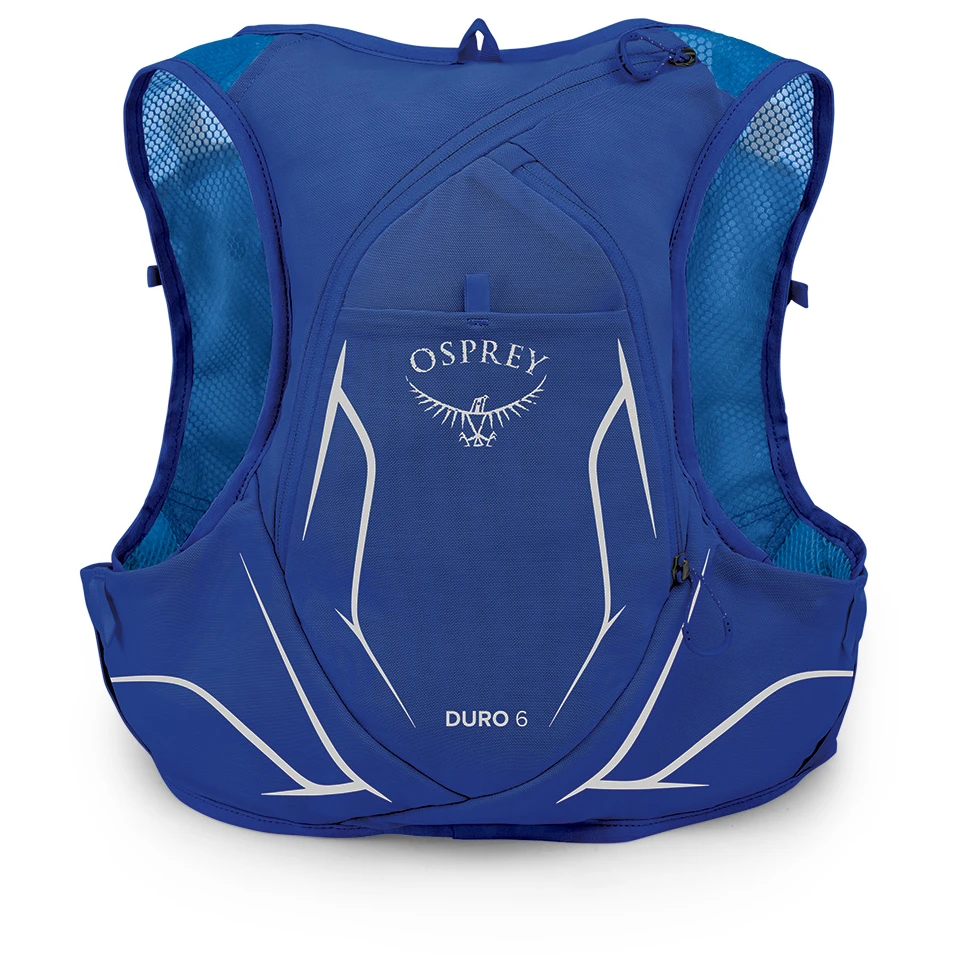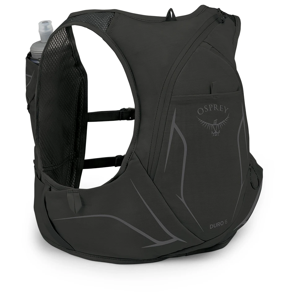 Laufrucksack Osprey Duro 6 im Stil einer Weste ist sehr bequem, engt dich beim Laufen nicht ein und hüpft nicht auf deinem Rücken. Damit genießt du deinen Lauf in vollen Zügen und dank seines Volumens bietet er Platz für alles, was du zum Energietanken brauchst – er beinhaltet zwei 500-ml-SoftFlask-Flaschen, mehrere Taschen für einen Energieriegel oder ein Gel, aber auch Wechselkleidung für den Fall, dass das Wetter schlecht wird.