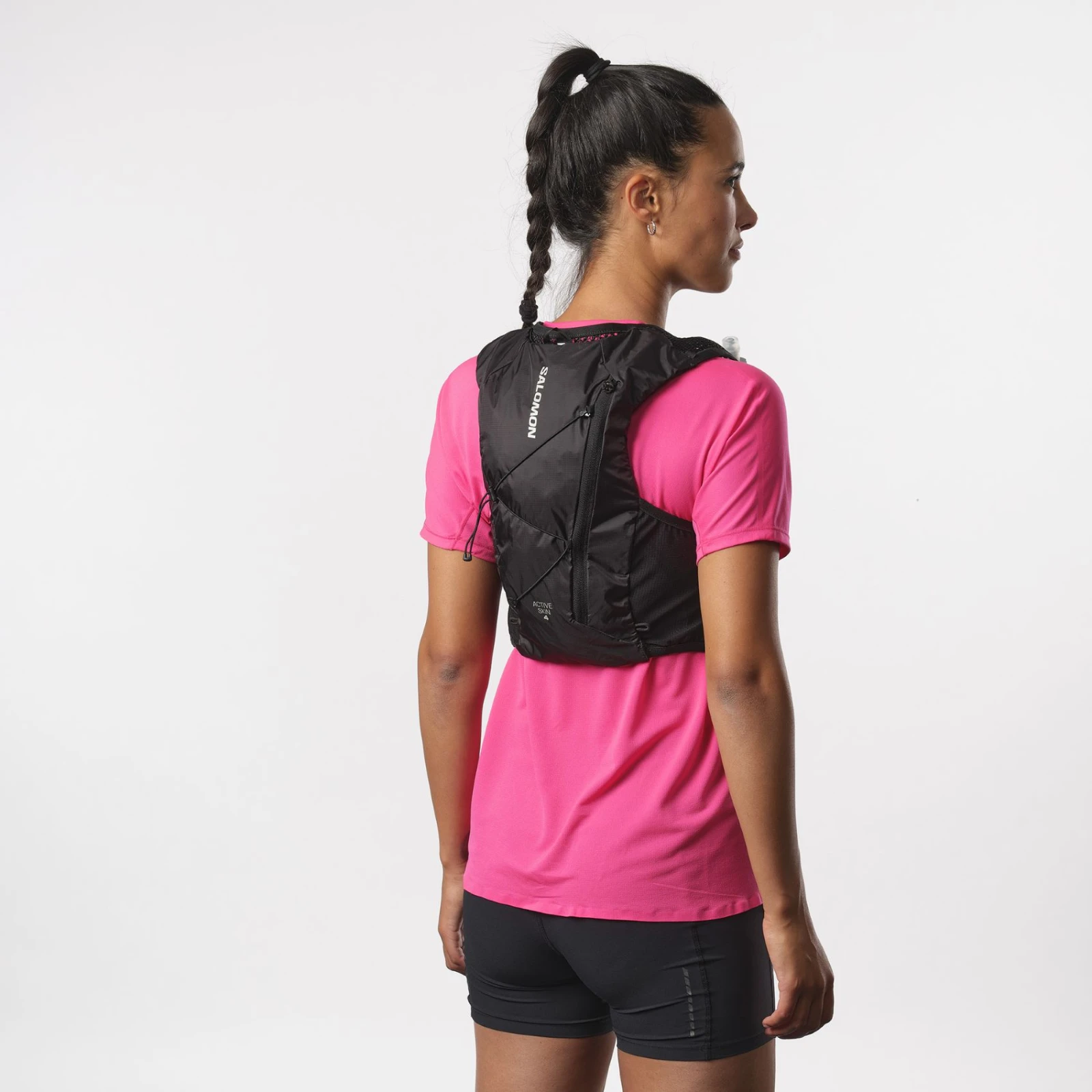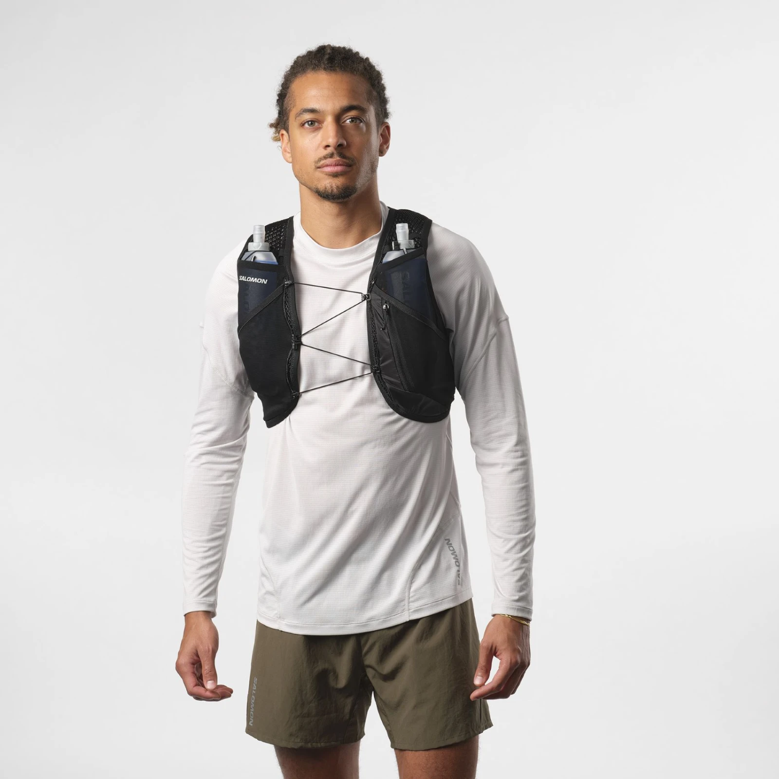 Die vielseitige Laufweste Active Skin 4 der Marke Salomon ist von Top-Trailrunnern inspiriert. Slim-Fit-Design Sensifit, weiche Stoffe und Mesh auf der Innenseite maximieren den Tragekomfort, während ein neues Verstellsystem die Weste genau dort hält, wo Sie sie haben möchten. Mit zwei strategisch platzierten Brusttaschen und 500-ml-Flaschen (nicht im Lieferumfang dieses Modells enthalten) Salomon können Sie Ihren Durst auch dann leicht löschen, wenn es hart auf hart kommt. Kompatibel mit einer 1,5-Liter-Trinkblase . Greifen Sie zu, was Sie brauchen, wenn Sie es brauchen, mit einfachem Zugriff, modularen Fächern und sicheren Taschen.