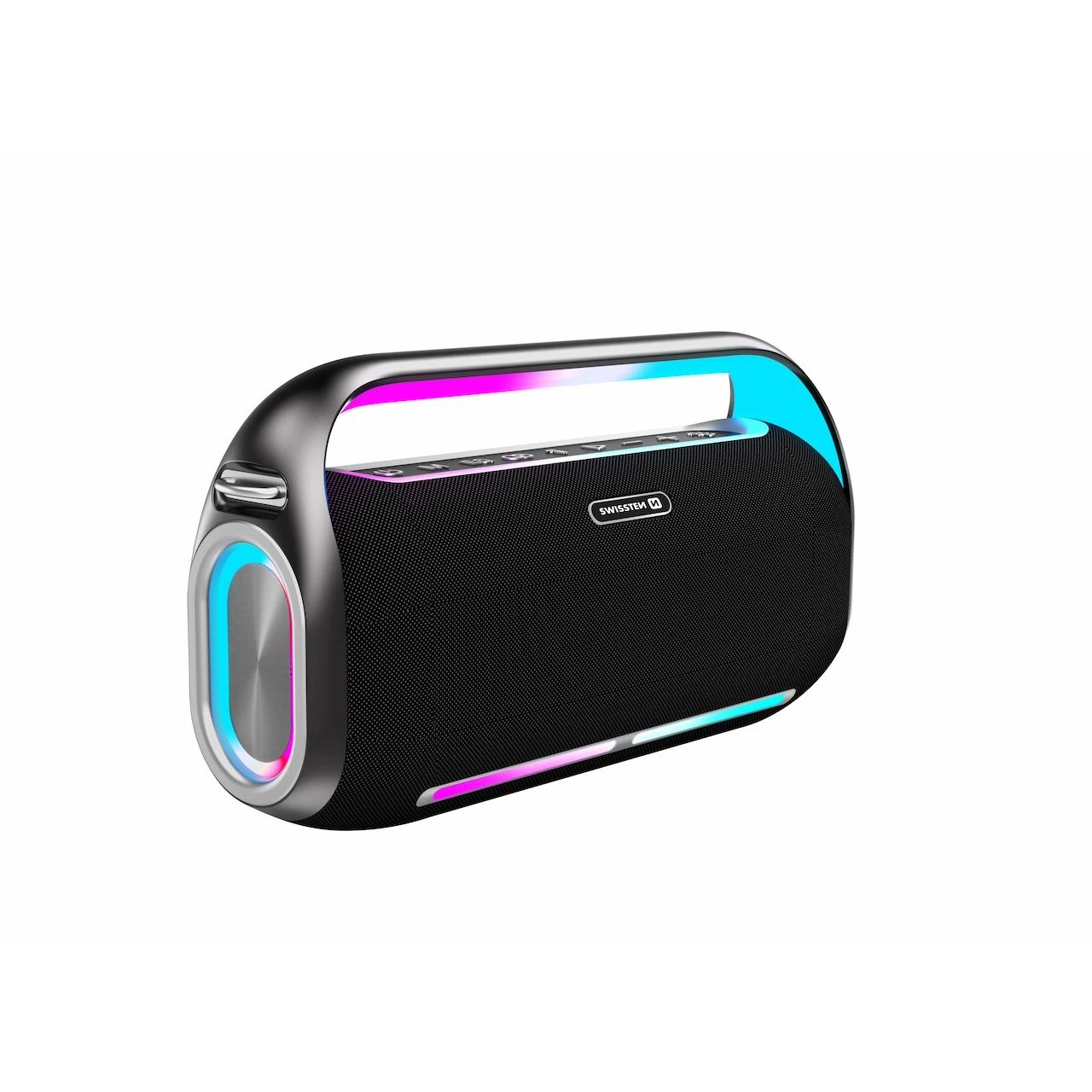 Der Harmony 200W Bluetooth-Lautsprecher mit Mikrofon Swissten garantiert ein hochwertiges Musikerlebnis, egal ob Sie im Freien trainieren oder eine Party veranstalten möchten.