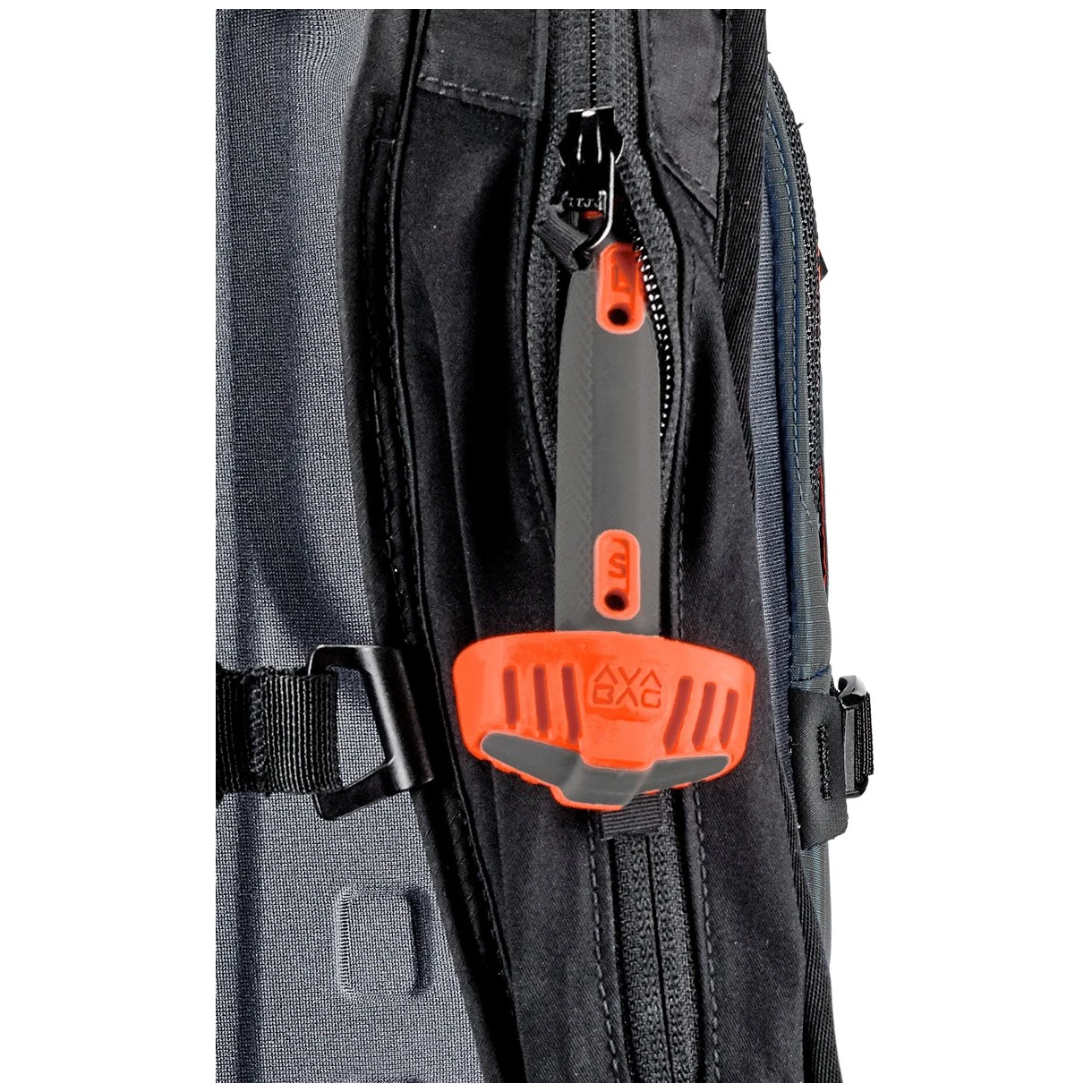 Das Hauptfach verfügt über einen Zwei-Wege-Reißverschluss entlang des gesamten Umfangs des Rucksacks, sodass Sie darauf wie auf einen Kofferzugreifen können. Du siehst alles sofort und musst nicht deinen ganzen Rucksack durchsuchen. Der Innenraum ist hell, sodass Sie auch das kleinste Detail erkennen können. In der Hauptkammer finden Sie eine gedruckte Anleitung zum Zusammenbau der Tasche, eine Gasflaschenschlaufe und einen Wasserreservoir-Clip. Auf der Deckelinnenseite befinden sich zwei Taschen, in denen Sie Dinge verstauen können, die Sie schnell zur Hand haben möchten – Handschuhe, Mützen, Kekse. Es gibt ein Fach für die Lawinenausrüstung. Damit im Falle eines Unfalls sofort klar ist, welche Tasche geöffnet werden muss, ist der Reißverschluss mit roten Endenversehen.