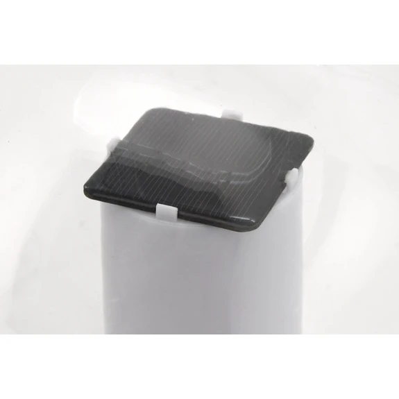 Das Produkt ist mit einem integrierten NiMH-Akkuausgestattet, der über ein Solarpanel auf der Oberseite durch die Sonne aufgeladen wird.