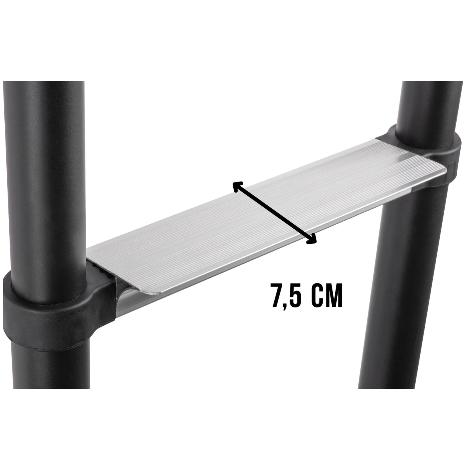 Brunner Laddy Alcove AIR ist eine innovative Aluminiumleiter, die für maximalen Komfort und Sicherheit beim Klettern konzipiert ist. Dank speziell geneigter Stufen bietet es stabilen Stand und ermöglicht bequemes Stehen auch barfuß. Es eignet sich optimal für den Einsatz bei Dachzelten, Etagenbetten oder bei der Fahrzeugwartung.
