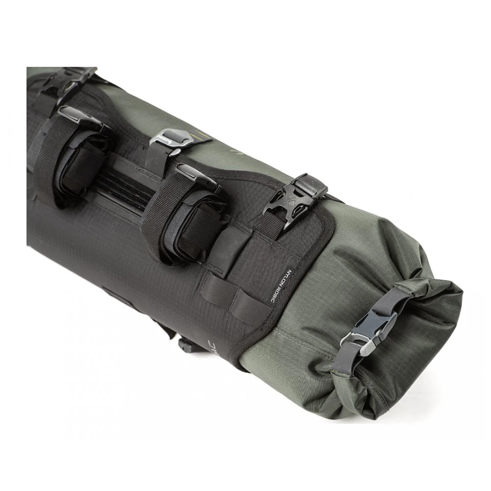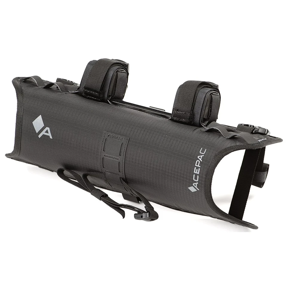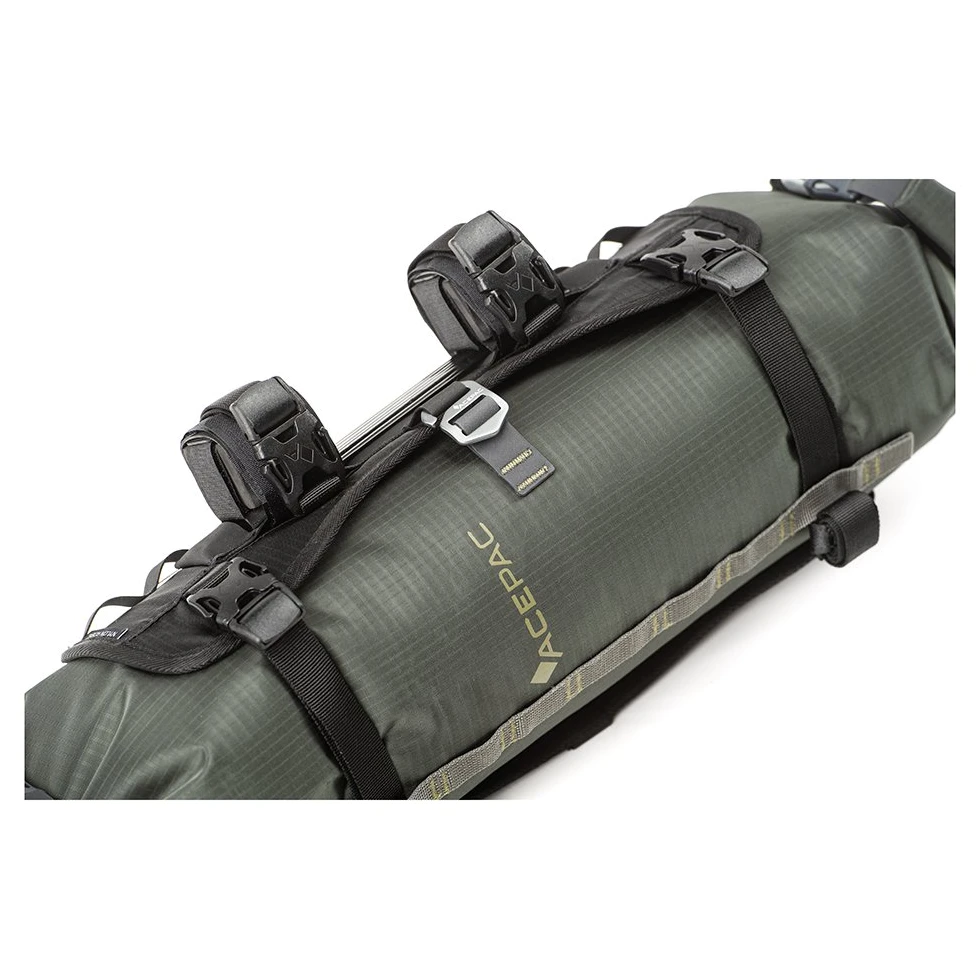 Als Produktionsmaterial wird hier Nylon Robicverwendet, das zur Gewährleistung der Festigkeit mit HDPE-Platten und Duraluminium-Verstärkungen ergänzt wird. Beanspruchte Nähte werden durch sog. Riegelstich (Zickzack), die bei der Herstellung verwendeten Fäden bestehen aus Polyester mit großem Faserdurchmesser für maximale Festigkeit. Die Bar Bag lässt sich am Lenker Acepac Bar Harness MKIII befestigen und vergrößert somit das insgesamt nutzbare Volumen am Lenker. Der Bar Drybag ist nicht im Paket enthalten.