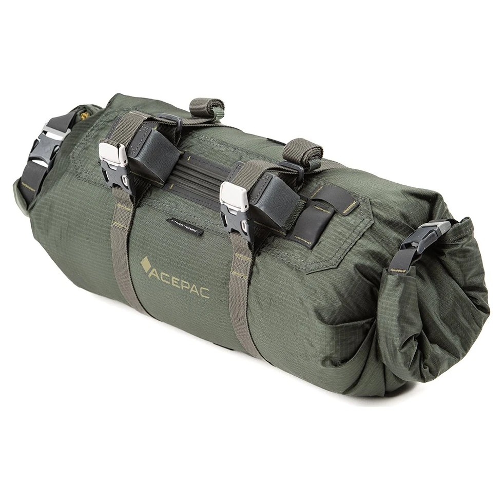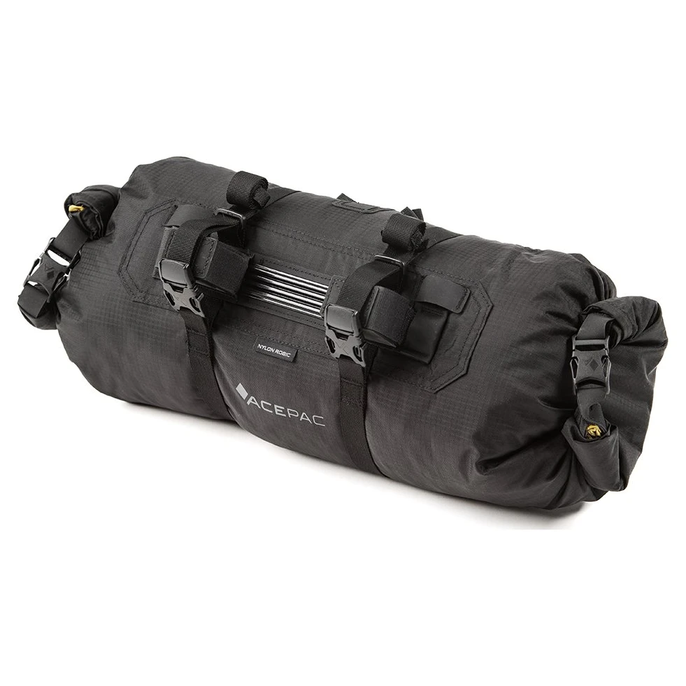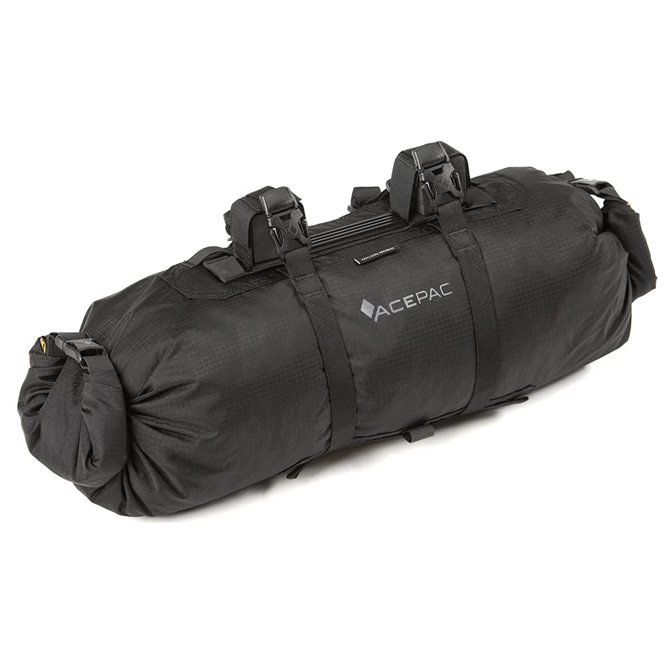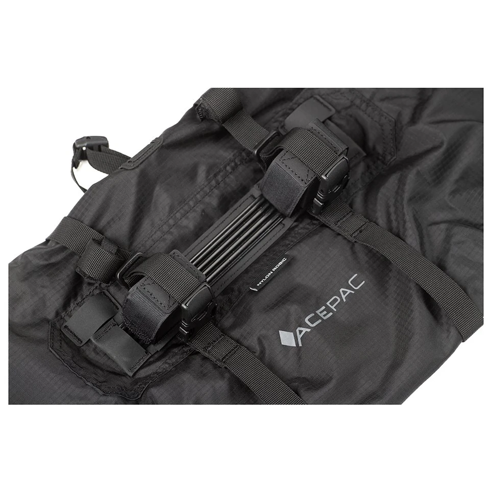 Lenkertasche Acepac Bar Roll MKIII lässt sich an vielen Lenkern befestigen. Der Beutelverschluss ist eine doppelseitige Rolle mit Nifco-Schnallen (-20 °C) für eine einfachere Bedienung mit Handschuhen. Durch Schließen der Clips am Tascheneingang lässt sich die Tasche wie ein klassischer Drybag rollen. Sie können das Volumen der Tasche durch Rollen von beiden Seiten auf 8–16 Liter (30–60 cm) anpassen. Das wichtigste bei der Produktion verwendete Material ist Nylon Robic (PU-Beschichtung 1500 mm H2O), ein strapazierfähiges und leichtes Gewebe. Die Lenkertasche Acepac Bar Roll MKIII verfügt außerdem über ein herausnehmbares, wasserdichtes Futter (beschichtetes Nylon-RipStop-Gewebe, PU 5000 mm mit verschweißten Nähten), das Ihnen das sichere Gefühl gibt, dass Ihre Kleidung und Wertsachen trocken bleiben.