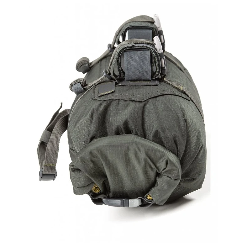 Die HDPE-Plattehilft dabei, das optimale Gewicht der Bewehrung zwischen den Distanzbändern zu erreichen. Polypropylen-Gurte, die zu 100 % recycelbar sind und eine raue Struktur aufweisen, rutschen nicht in den Schnallen. Der Camlok-Verschluss verhindert ein Verrutschen des Gurtes. Der beidseitige Rollverschluss der Tasche erfolgt über eine Markenschnalle Nifco (-20 °C) zur einfachen Bedienung mit Handschuhen. Es ist auch möglich, die Tasche wie einen klassischen Drybag zu rollen, indem die Schnallen am Tascheneingang geschlossen werden.