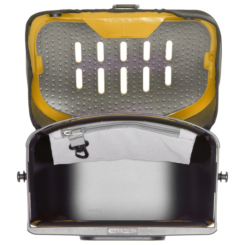Maximaler Schutz für Ihr Eigentum wird durch äußerst strapazierfähiges Material gewährleistet, das mit der IP 54 -Zertifizierung eine erhöhte Wasser- und Staubbeständigkeit aufweist. Der Zugriff auf die Tasche ist dank des innovativen Magnetverschlusses schnell und einfach. Der Deckel ist außerdem mit einer 22 x 12 cm großen Tasche mit transparenter, wasserdichter Folie ausgestattet, in der Sie beispielsweise ein Mobiltelefon, ein GPS oder eine Karte aufbewahren können. In der inneren Reißverschlusstasche können Sie Ihre Sachen verstauen.