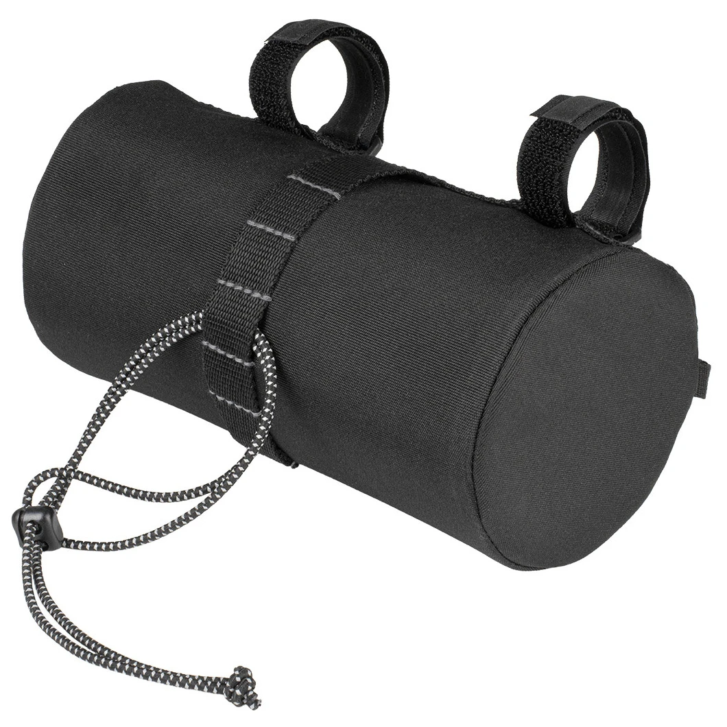 Die Tasche besteht aus strapazierfähigem 600D-Polyester, das Wasser und Flecken abweist. Die Befestigung erfolgt mittels zwei Anti-Rutsch-Gurten und einer elastischen Kordel, die für einen stabilen Sitz an unterschiedlichen Lenkertypen sorgt. Durch das Gummiband an der Außenseite können weiche Gegenstände wie Handschuhe oder eine Windjacke befestigt werden.
