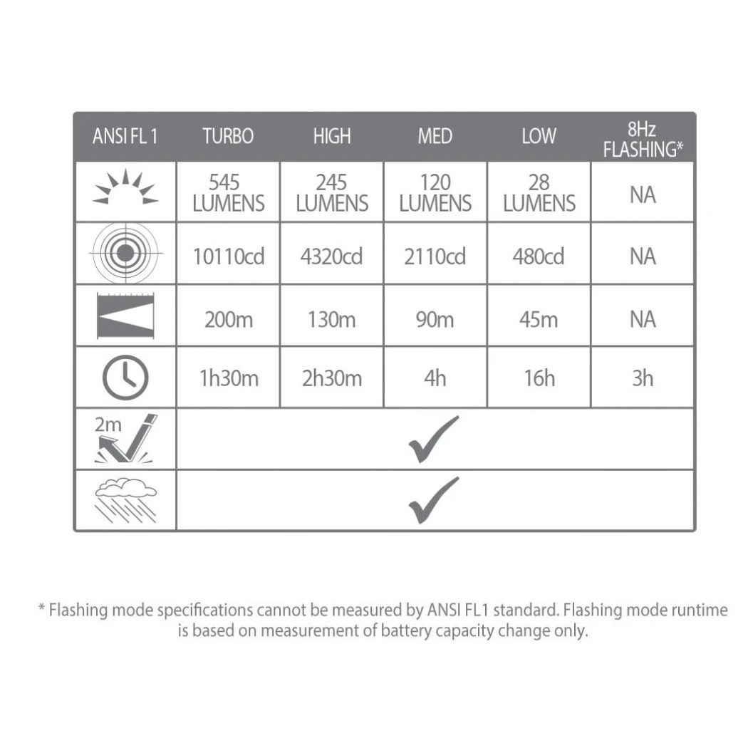 Taschenlampe Lifesystems Intensity 545 Hand Torch, Rechargeable ist eine langlebige wiederaufladbare Taschenlampe mit einer Hochleistungsdiode von Nichia mit bis zu 545 Lumen Lichtleistung und Reichweite von 45–200 m. Diese Taschenlampe bietet Ihnen 5 Intensitätsmodi und verfügt auch über einen Blinkmodus. Es verfügt über ein wasserdichtes Aluminiumgehäuse und wiederaufladbare Lithium-Ionen-Akkus, die mit einer Ladung bis zu 16 Stunden halten. Im Lieferumfang der Taschenlampe ist außerdem ein MicroUSB-Ladekabel enthalten. Die Taschenlampe ist vielseitig einsetzbar und eignet sich für den Nachtsport.