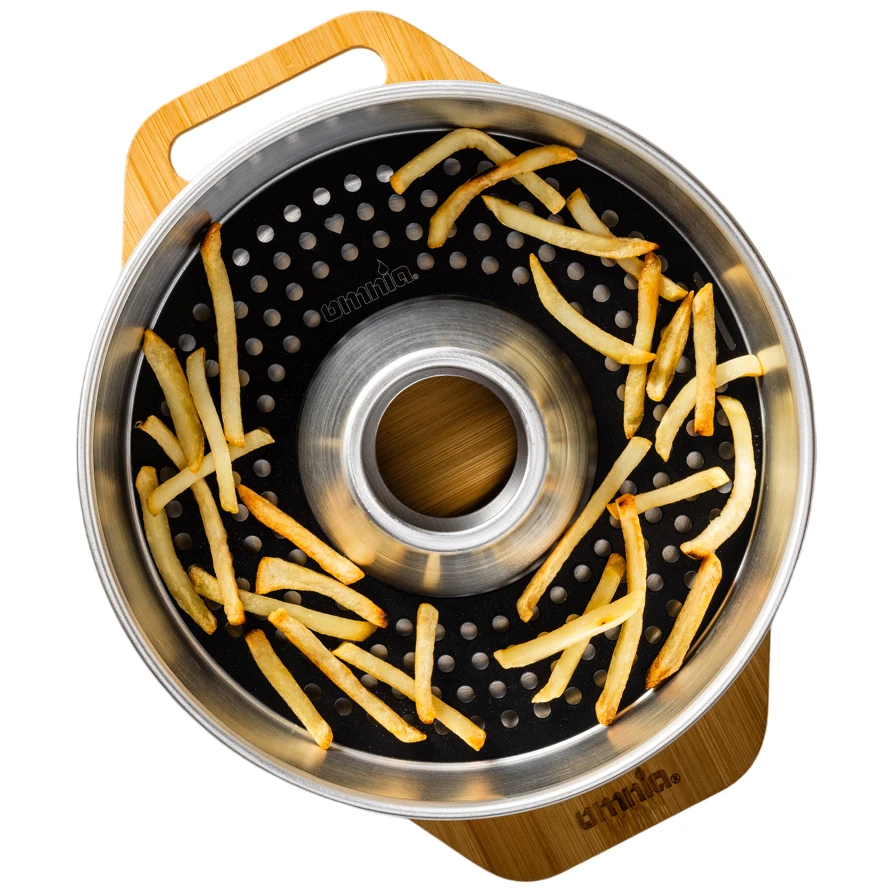 Spezielles Backblech der schwedischen Marke Omnia mit keramischer Antihaftbeschichtung, wenn Sie sichergehen möchten, dass Ihre Speisen schön gebräunt werden. Die keramische Antihaftbeschichtung sorgt dafür, dass nichts anhaftet. Kleine Löcher verhindern, dass etwas durchfällt. Ideal für Pommes und Gemüse.