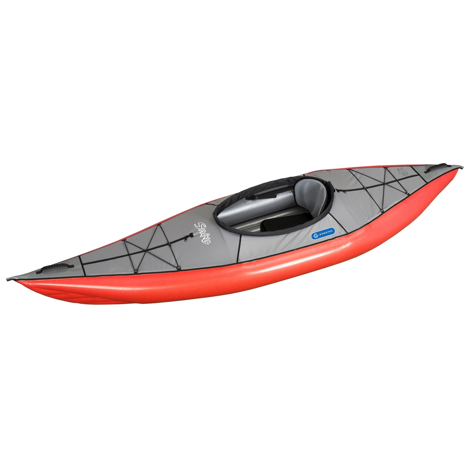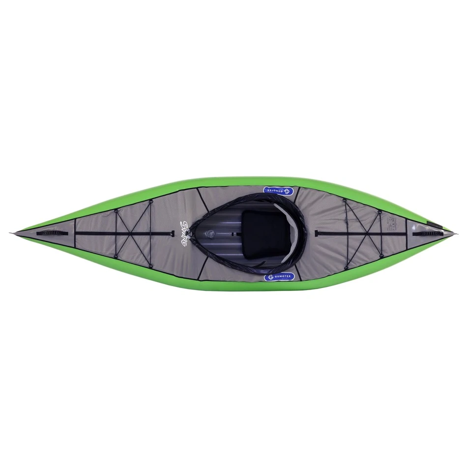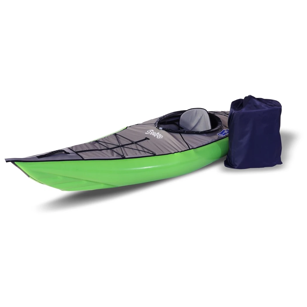 Das geschlossene Schlauchkajak SWING 1 der Marke Gumotex verfügt über ein Verstärkungssystem, das ihm die nötige Steifigkeit für eine einfache Handhabung und hervorragende Stabilität verleiht. Dank seines geringen Gewichts (11,3 kg) eignet sich das Kajak ideal für Touren, bei denen ein häufiges Tragen des Bootes erforderlich ist. Das geschlossene Cockpit schützt den Kajakfahrer und sein Gepäck vor eindringendem Wasser.