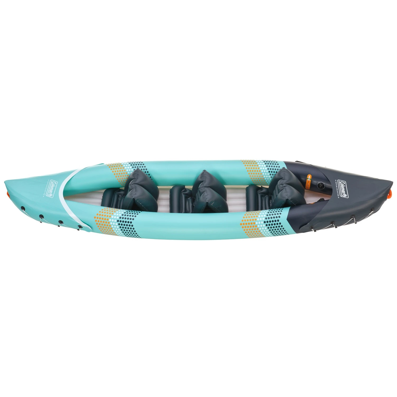 Das dreisitzige Familienkajak Toledo des Herstellers Sevylor ist eine tolle Wahl für Abenteuer auf dem Wasser mit Familie oder Freunden. Dank seiner geräumigen Bauweise bietet es ausreichend Platz für zwei Erwachsene und ein Kind und ist somit das ideale Kajak für gemütliche Touren auf Seen, Flüssen oder Küstengewässern. Das Kajak ist mit drei verstellbaren und abnehmbaren aufblasbaren PVC-Sitzen mit Klettverschluss ausgestattet, die ein Verrutschen verhindern und die Stabilität während der Fahrt verbessern.