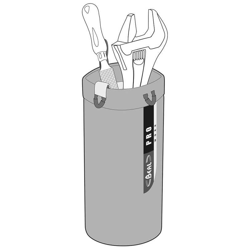 Die Arbeitstasche Tool Bucket Long mit 5 Liter Volumen eignet sich für kleine Werkzeuge für Arbeiten in der Höhe. Einfaches Verschlusssystem Clic-Clac dient dazu, den Verlust des Inhalts beim Transport zu verhindern. Zwei kleine Außenösen zum Einhängen der Beal Air-Leash - einem elastischen Sicherungsgurt - um das Werkzeug gegen Herunterfallen zu sichern. Dank zweier kleiner Karabiner lässt sich die Tasche an einem Arbeitsgurt oder Arbeitssitz befestigen.