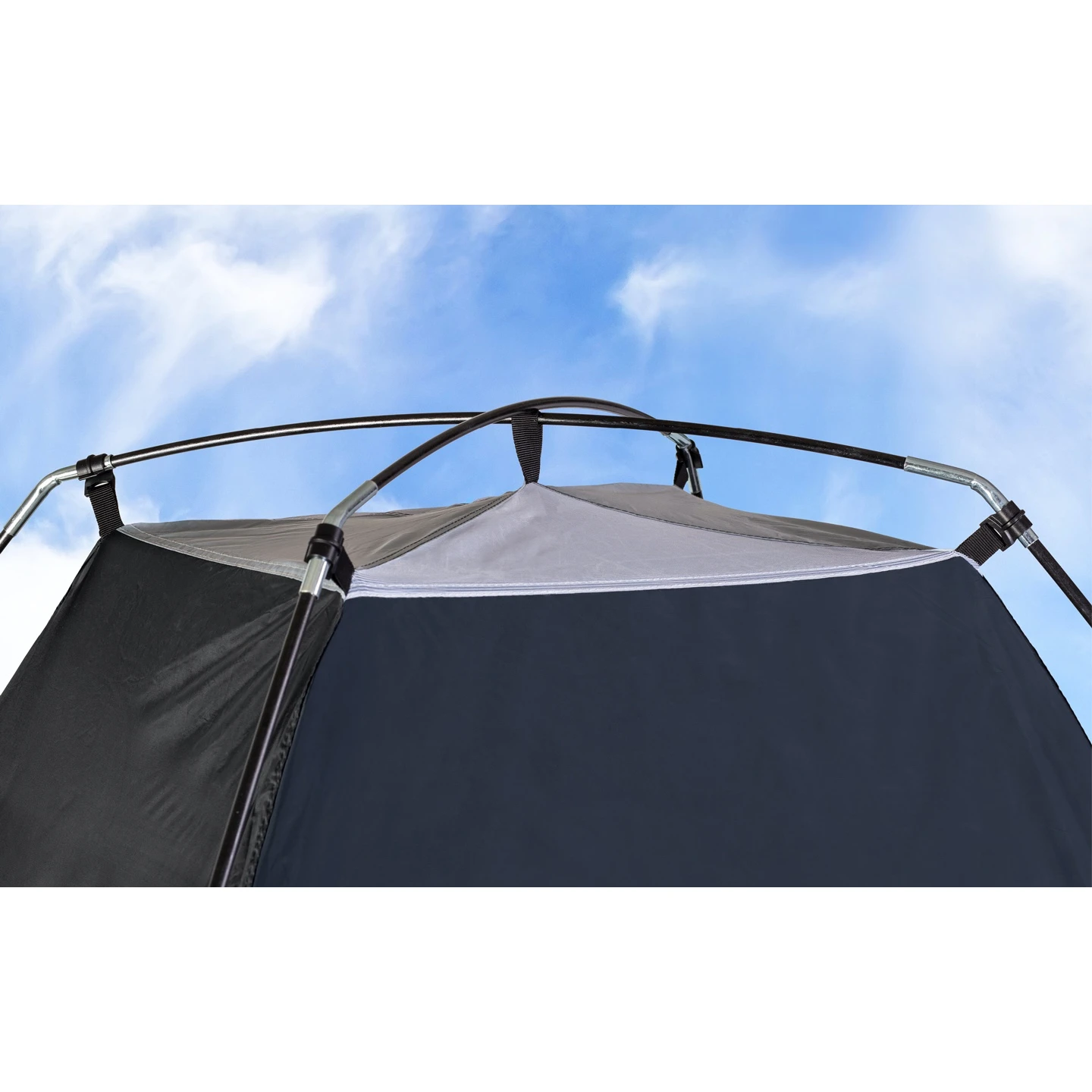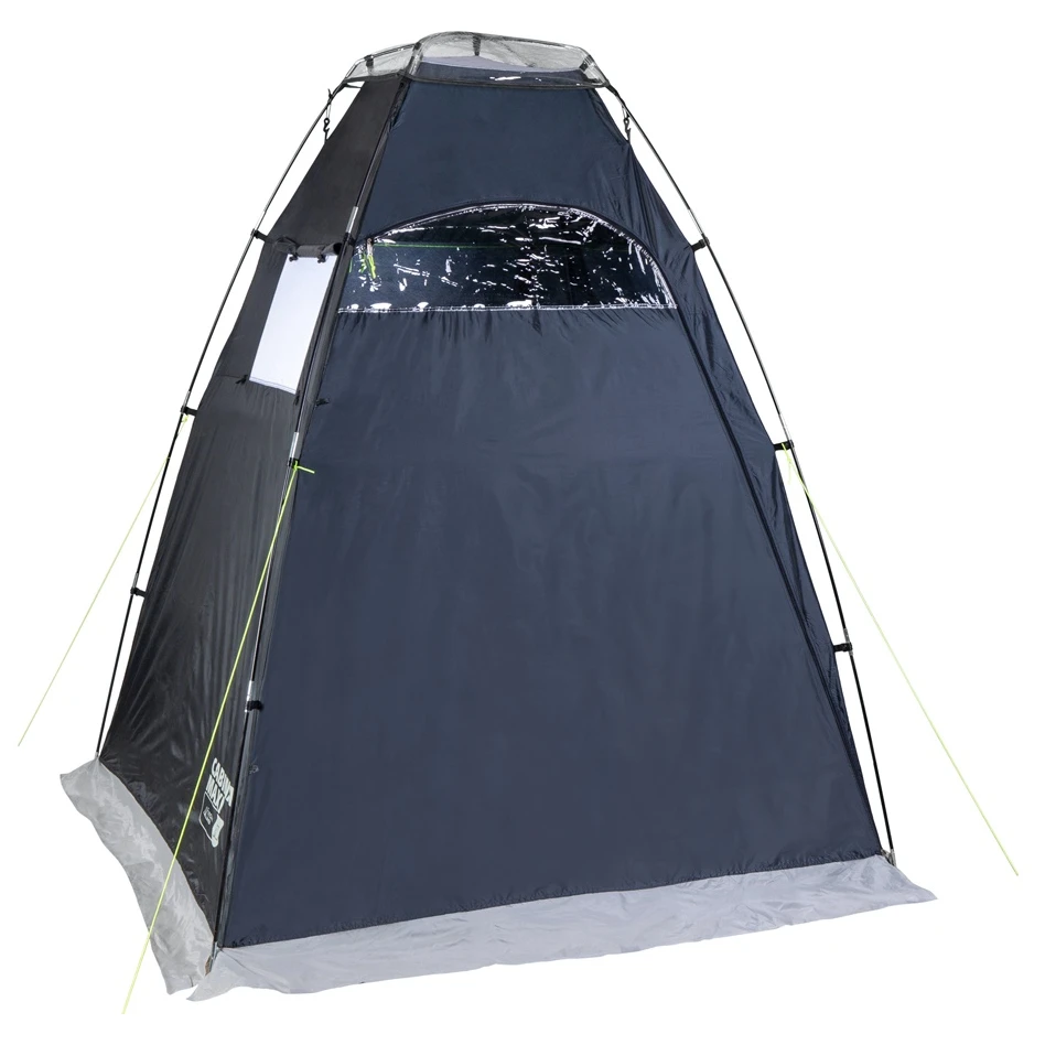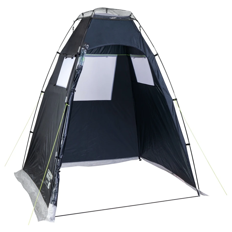 Das Cabina Maxi Mehrzweckzelt der Marke Brunner bietet eine einfache und schnelle Lösung, um einen diskreten Raum zum Umziehen, Duschen oder sogar Kochen zu schaffen. Das Zelt ist mit einem äußerst strapazierfähigen Außenzelt aus Polyester ausgestattet, das UV-beständig ist. Die Struktur besteht dann aus starken und leichten Fiberglasstäben.