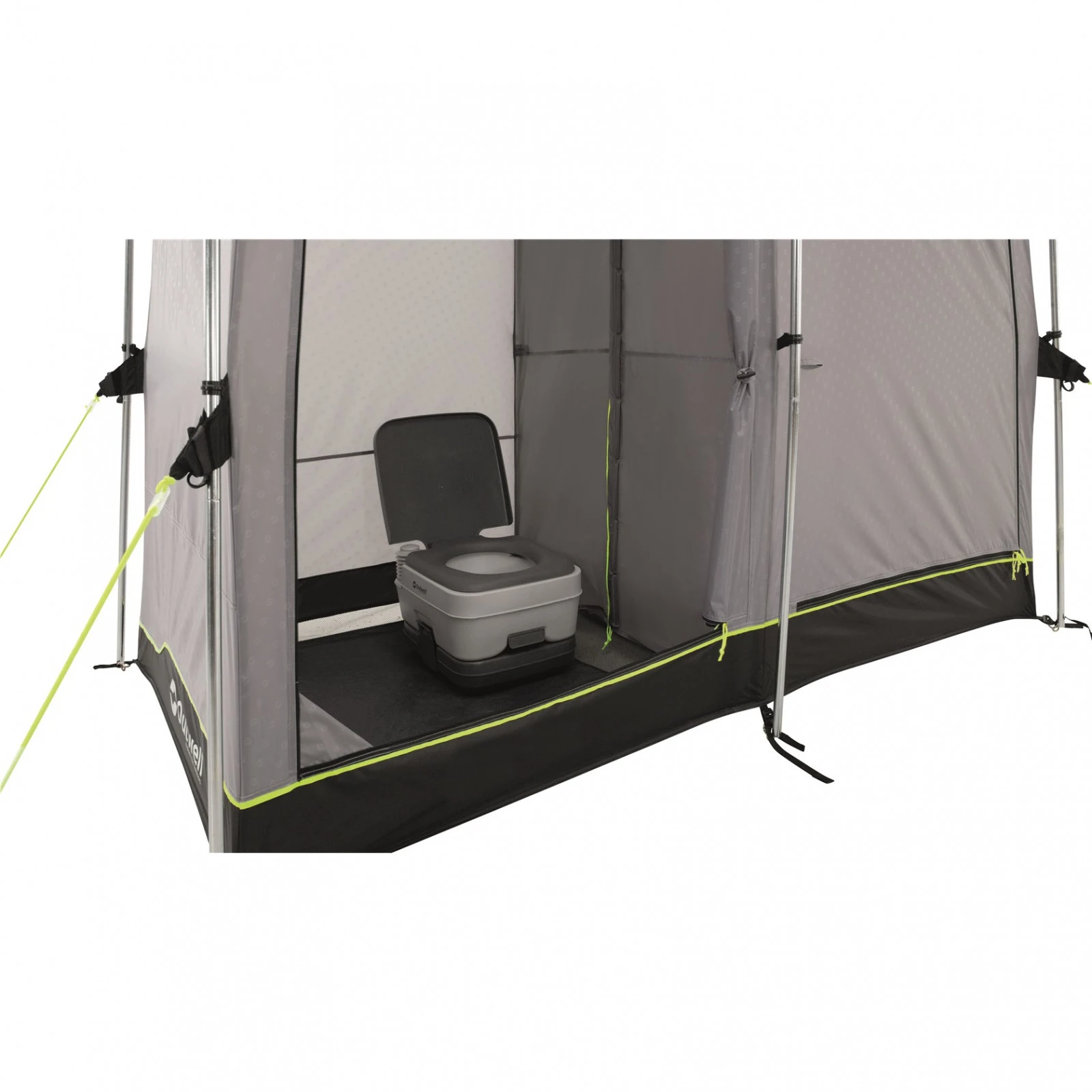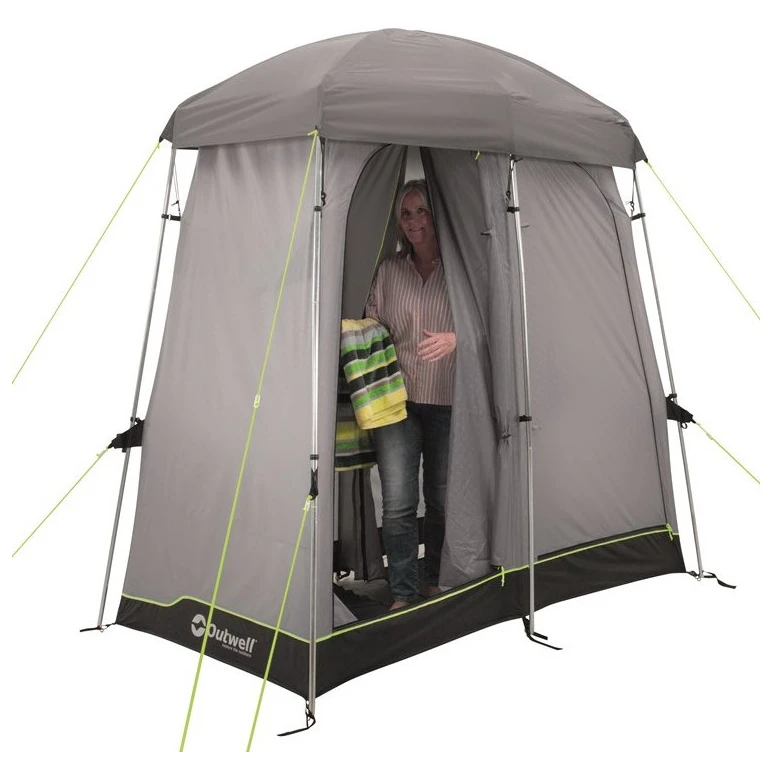 Das Seahaven Comfort Station Double-Mehrzweckzelt von Outwell bietet eine einfache und schnelle Lösung, um einen diskreten Platz für eine Chemietoilette und eine Dusche zu schaffen. Das Zelt besteht aus zwei Kabinen, die durch eine Trennwand mit magnetischem Verschlusssystem Quick & Quietgetrennt sind. Dank dieser Abtrennung können Sie nach dem Duschen in der zweiten Kabine einen Raum zum Umziehen schaffen.