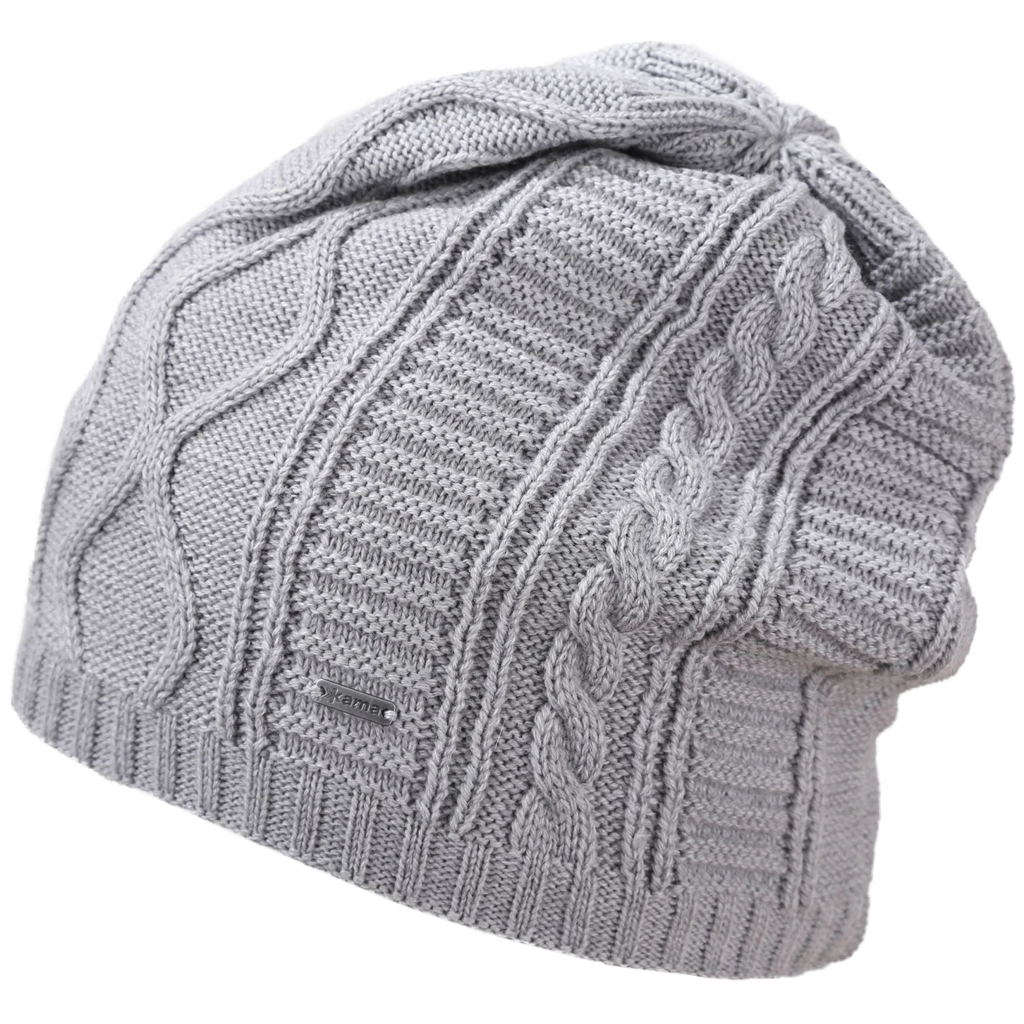 Damen-Strickmütze aus Merinowolle Kama A150 ist eine einfarbige Mütze mit länglichem Schnitt und geflochtenem Strick. Das Gestrick mit plastischem Muster ist flauschig und fühlt sich voluminös an, ohne schwer zu sein. Die Mütze besteht aus hochwertigem Schoeller-Garn im Verhältnis 45 % feiner Merinowolle und 55 % gebauschtem Acryl. Innen befindet sich eine Besatzleiste aus Tecnopile ® Fleece. Die Mütze überzeugt durch ihre Weichheit, Flauschigkeit und Wärme.