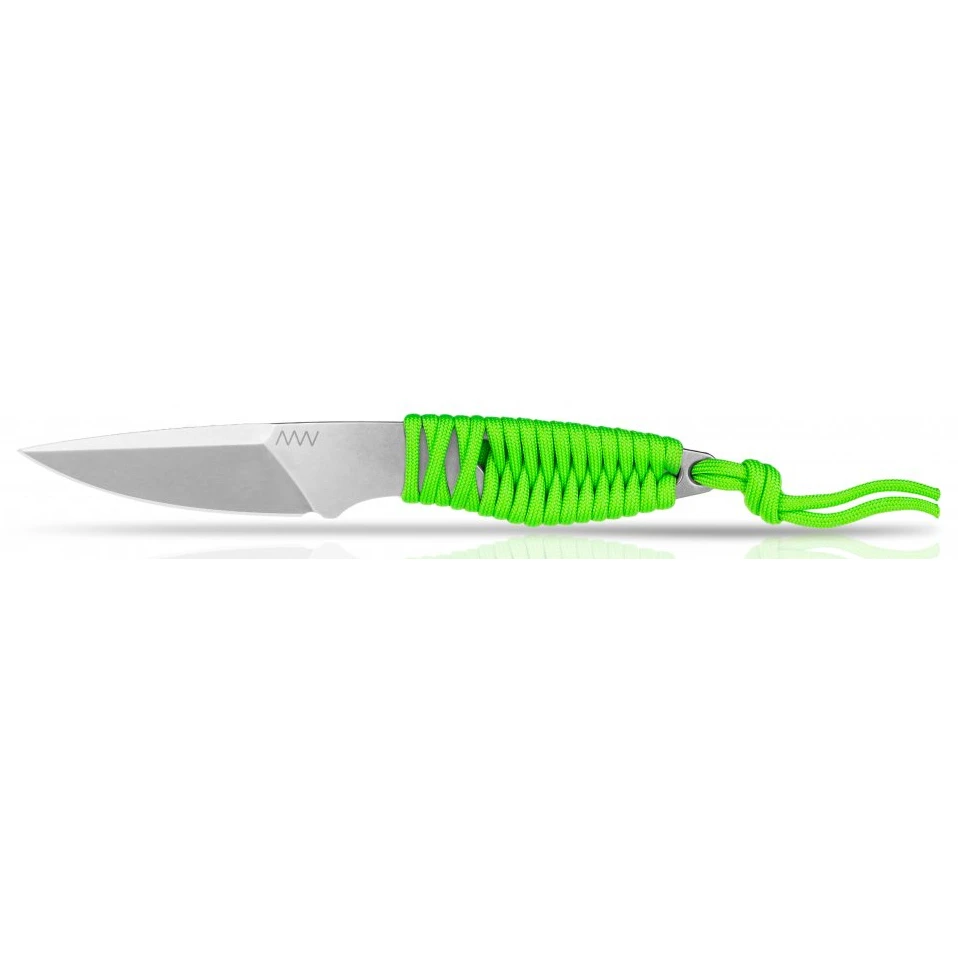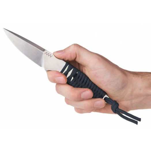 Das P100 Festklingenmesser von Acta Non Verba besticht durch sein minimalistisches Design und sein geringes Gewicht von 77 g. Das Messer ist komplett aus D2-Stahl gefertigt. Die Länge der Messerklinge beträgt 78 mm, die Gesamtlänge des Messers beträgt 185 mm. Der Griff ist mit Paracord in vielen beliebten Farben geflochten.