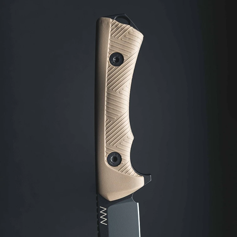 Eine Innovation ist beispielsweise der schwedische, kryogenisch gehärtete Stahl Sleipner, der eine massive lange Klinge bildet. In Kombination mit einer robusten Spitze gewährleistet dies eine komfortable und sichere Anwendung bei jeder Aktivität. Die Klinge mit glatter Schneide ist außerdem mit einer äußerst haltbaren Cerakote-Beschichtung versehen.