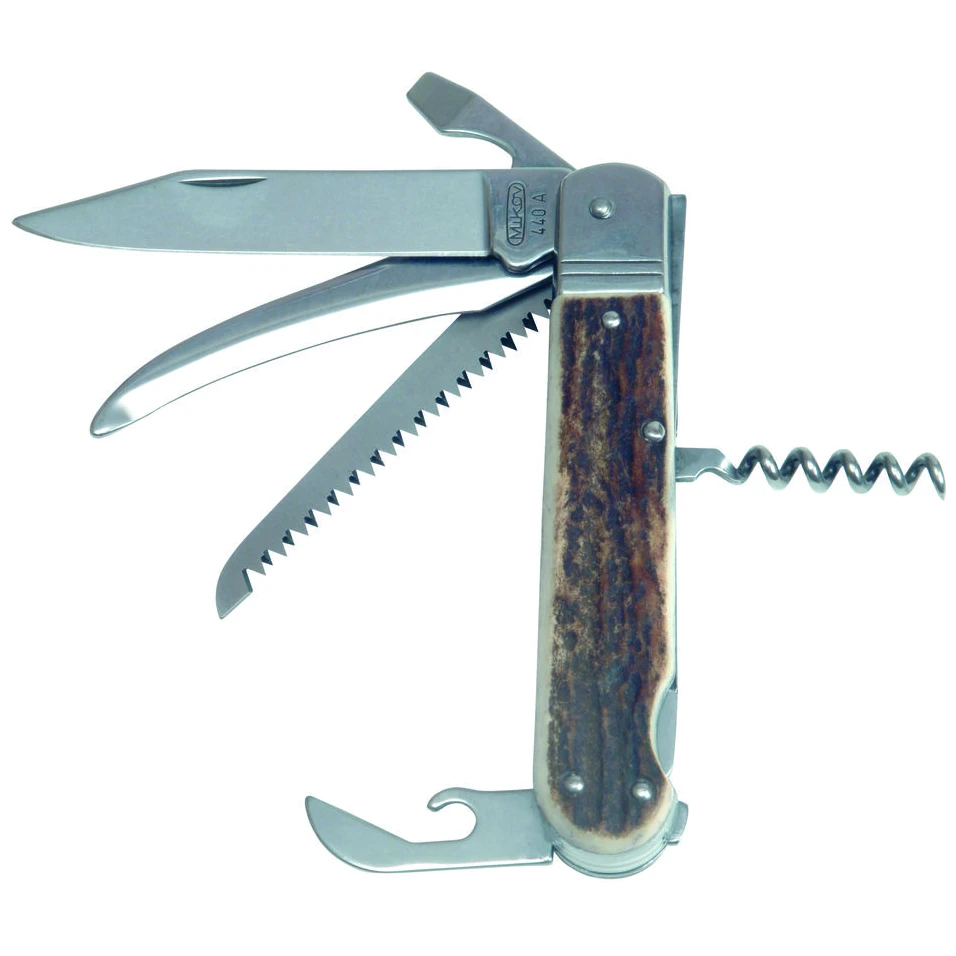 Das Fixir Jagdmesser ist mit einer Klinge aus hochwertigem 440A Edelstahl mit einer Härte von 56HRc ausgestattet. Die Klinge des Fixir Jagdmessers verfügt über einen konischen Schliff, der nicht nur eine bessere Schneidleistung, sondern auchPflege ermöglicht. Ausgestattet ist dieser Jagdmessertyp mit einer hochwertigen Säge mit zwei Zahnreihen. Ausgestattet ist das Messer außerdem mit einem Korkenzieher, einem Zahnstocher, einem Dosenöffner und einem Kapselheber, der zudem als flacher Schraubendreher oder zum Entfernen von Isolierungen genutzt werden kann.