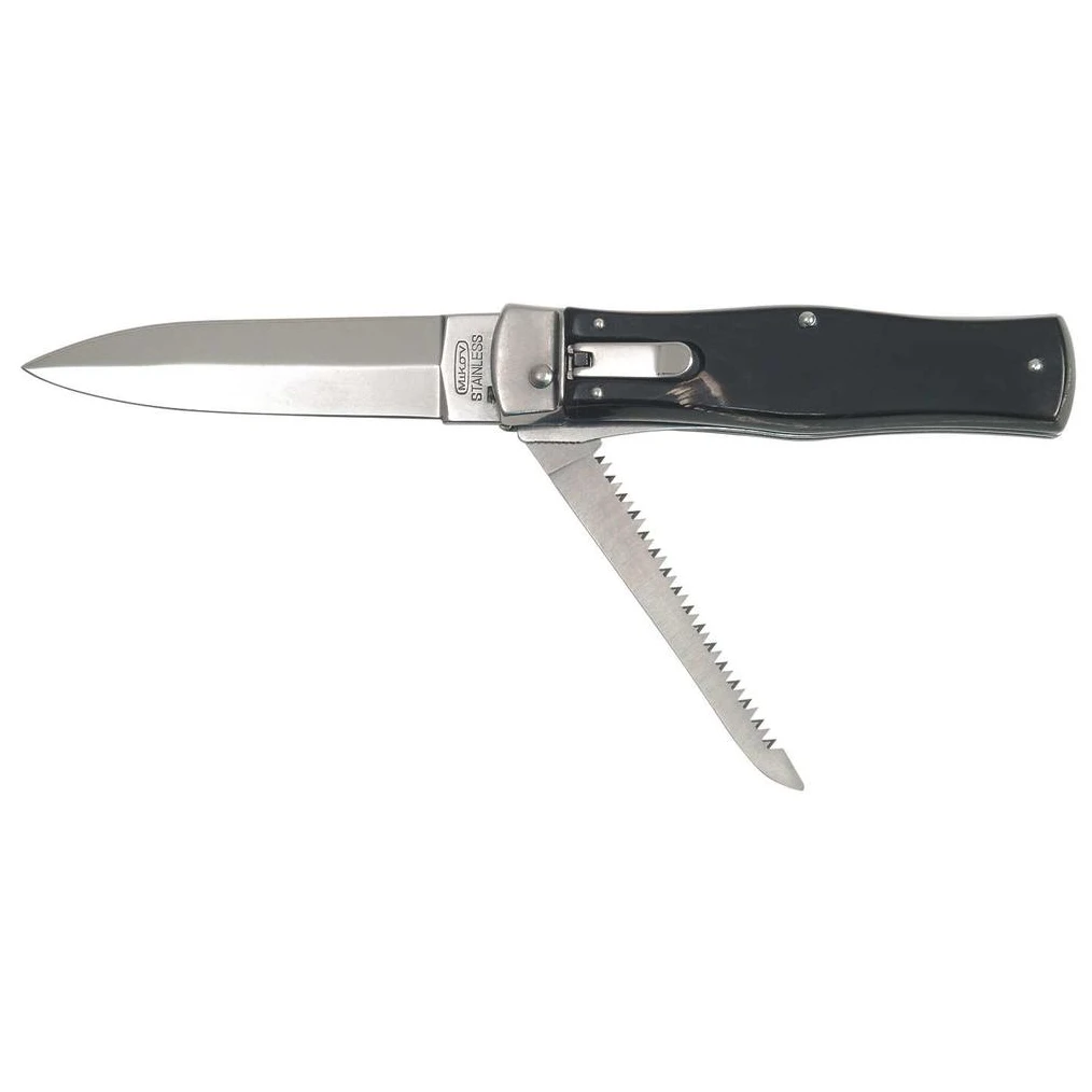 Dank der Klinge und Säge aus rostfreiem Stahl, die robust und dennoch flexibel sind, bietet Ihnen dieses Messer hohen Komfort bei der Anwendung. Unterstrichen wird das gesamte Design durch einen ergonomisch geformten Griff aus Büffelhorn. Das Messer wird mit einer Lederscheide geliefert.