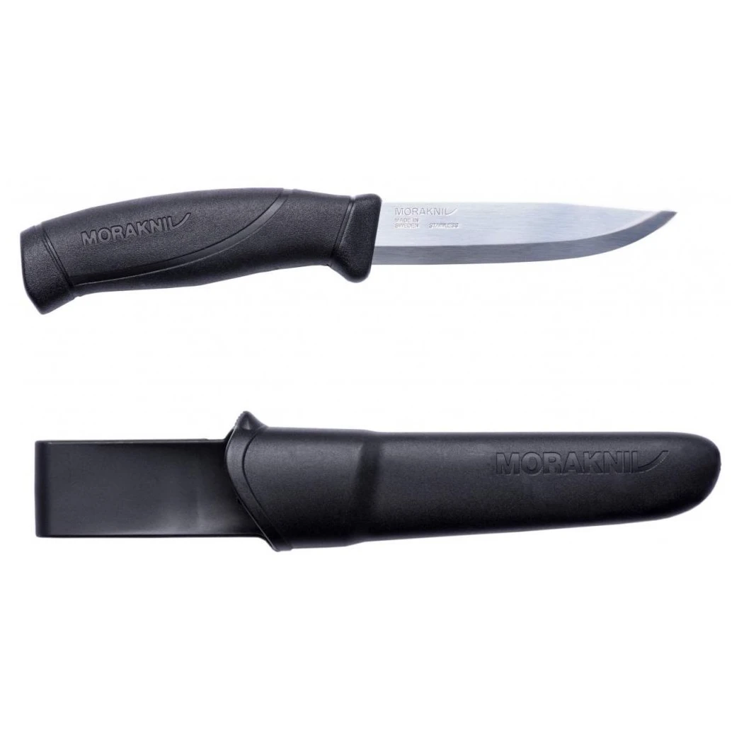 Morakniv Companion ist ein vielseitiges Messer mit fester Klinge , das für die Arbeit und Outdoor-Aktivitäten entwickelt wurde. Die Klinge besteht aus rostfreiem Sandvik 12C27-Stahl , ist kaltgewalzt und auf HRC 57–58 gehärtet. Die Oberkante der Klinge ist nicht poliert. Durch die Form und Gestaltung wird die Ermüdung und das Verletzungsrisiko bei wiederholten Bewegungen des Messers effektiv verringert. Der geformte Griff mit Rille ist aus strapazierfähigem Kunststoff gefertigt und mit einer Schicht aus weichem, griffigem Gummi überzogen, rutschfest. Der 3 cm lange Handschutz verhindert ein Abrutschen der Hand und Verletzungen an den Fingern.