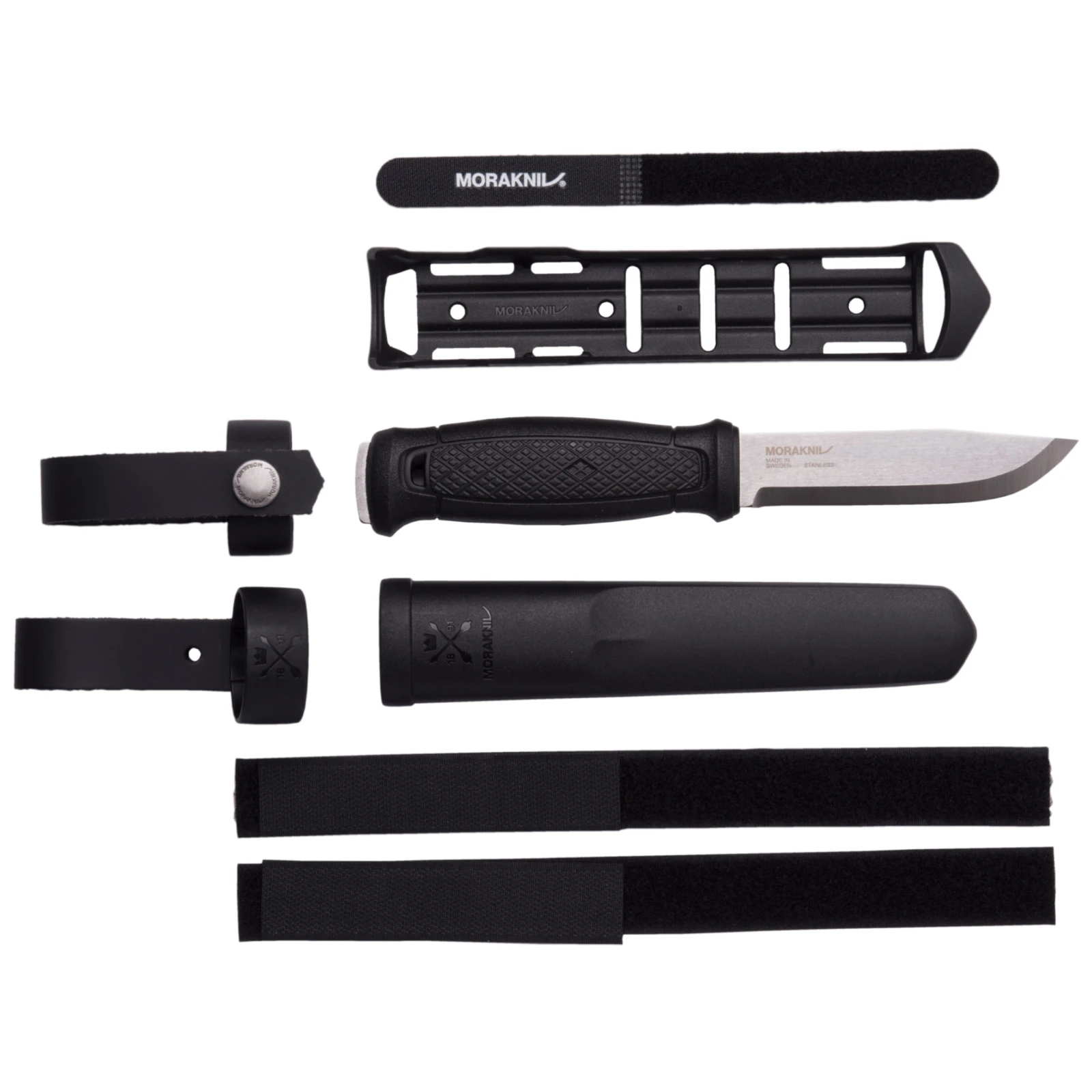 Morakniv Das Garberg Multi-Mount (S) ist eines der langlebigsten Messer im Sortiment der schwedischen Marke. Die Messerklinge besteht aus rostfreiem Stahl, welcher auf einen Scandi-Schliff geschliffen ist, was für eine hervorragende Schneidleistung des Messers und gleichzeitig ein leichtes Schärfensorgt. Dank der Full-Tang-Konstruktion und der Klingenstärke von 3,2 mm ist es allen Bushcraft-Fähigkeiten gewachsen und Du musst keine Angst haben, mit diesem Messer zu hacken, zu spalten oder zu batonieren.