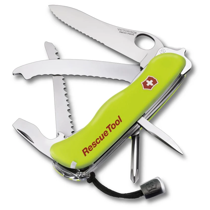 Victorinox Rescue Tool ist ein Rettungs- messer, das Sie in jeder Situation unterstützt. Es ist mit vielen Funktionen ausgestattet, die Sie bei Aktivitäten in großen Höhen, Extremsportarten oder einfach, wenn Sie jemandem helfen müssen, nutzen können. Das 111 mm lange Messer mit insgesamt 15 Funktionen verfügt unter anderem über eine große Klinge mit kombinierter Schneide, eine einhändig zu öffnende Öse und einen Sicherungsverschluss. Um eine Person zu retten, können Sie einen Fenstereinschlagdorn, eine Säge zum Schneiden von Glasscherben oder eine Sicherheitsgurtschneideklinge verwenden. Die Messerwerkzeuge sind aus rostfreiem Stahl gefertigt und in einen Kunststoffgriff eingefasst, der lumineszierend ist (leuchtet nachts). Eine Nylonhülle ist im Lieferumfang enthalten.