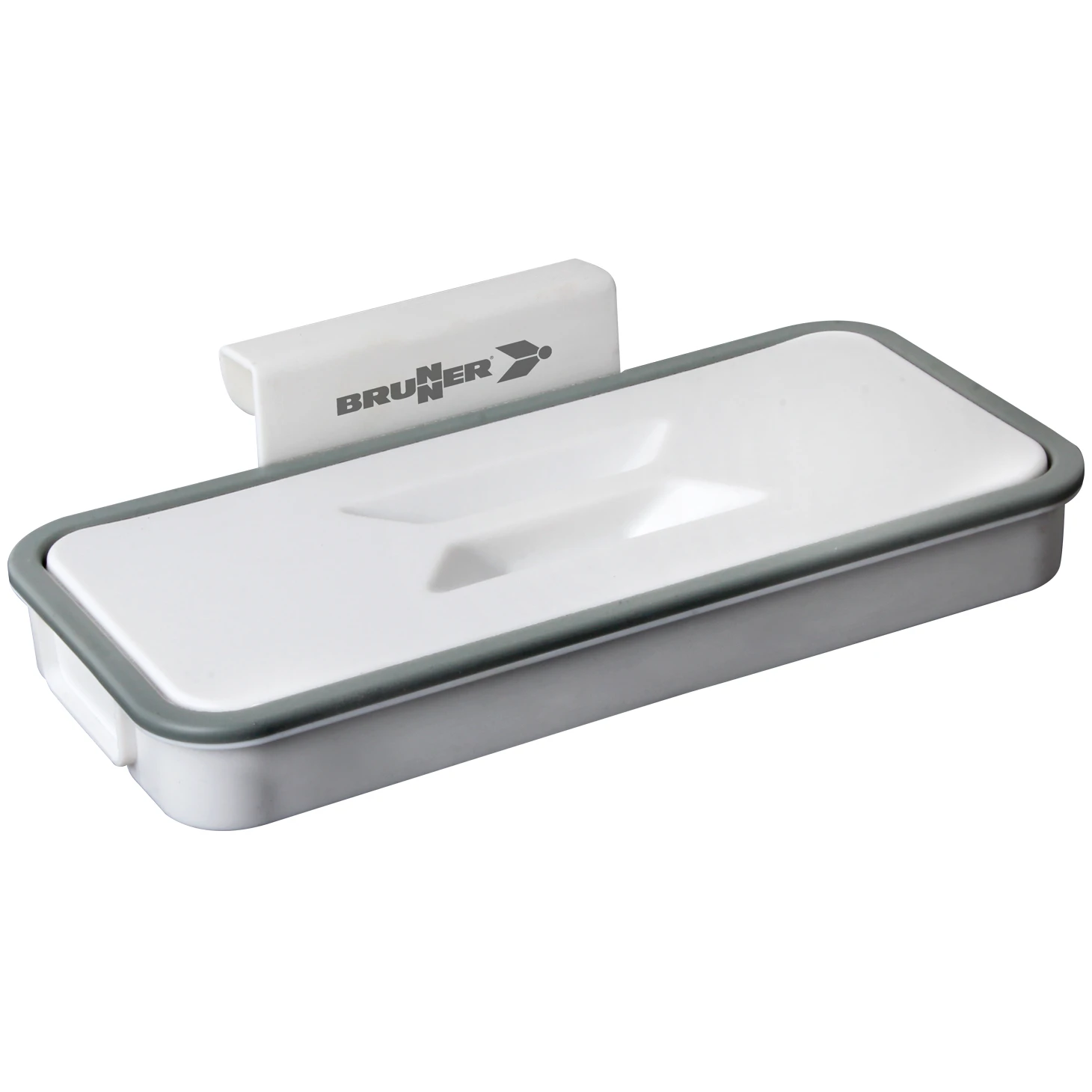One Way der Marke Brunner ist ein praktischer Müllbeutelhalter, der an jeder Schublade und jedem Schrank befestigt werden kann. Dank der kompakten Maße ist der Einsatz auch unterwegs, auf dem Campingplatz und im Garten problemlos möglich. Die Montage der Halterung dauert nicht einmal ein paar Sekunden, einfach aufstecken und fertig. In der Halterung können dann Beutel bis zu einem Volumen von 30 Litern untergebracht werden.