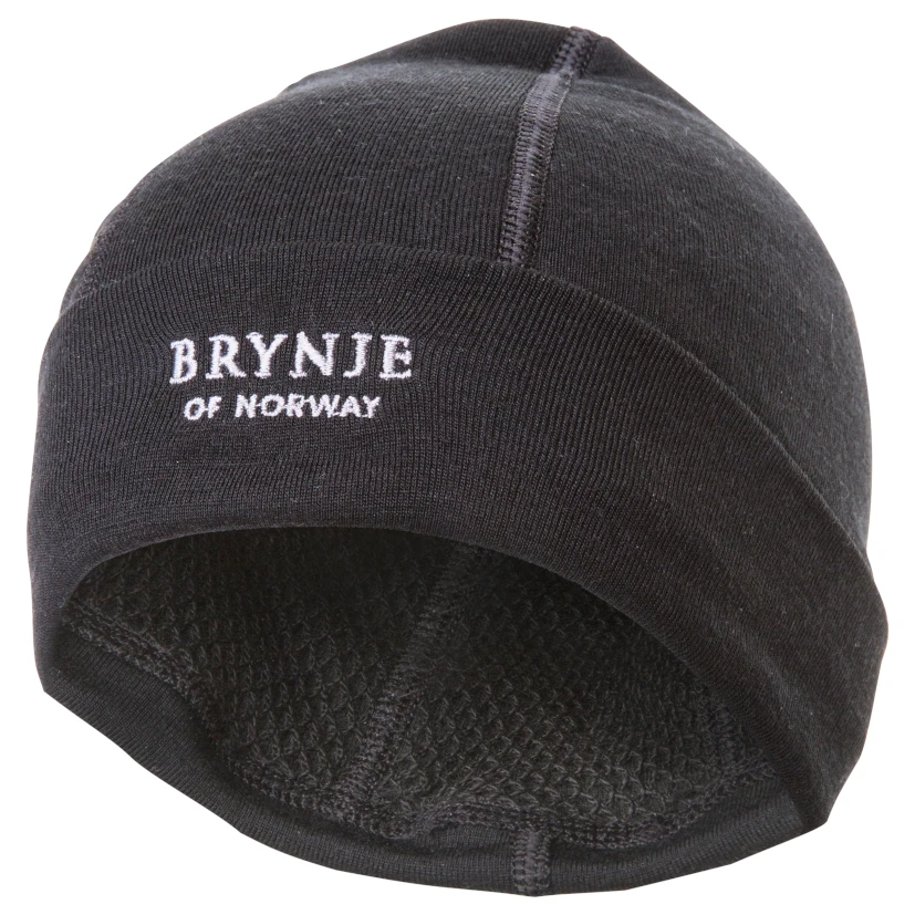 Funktionelle doppellagige Funktionsmütze Brynje Arctic Double aus Merino Wolle mit original Funktionsnetz darunter zur Erhaltung der richtigen Temperatur und zum Ableiten von Feuchtigkeit.