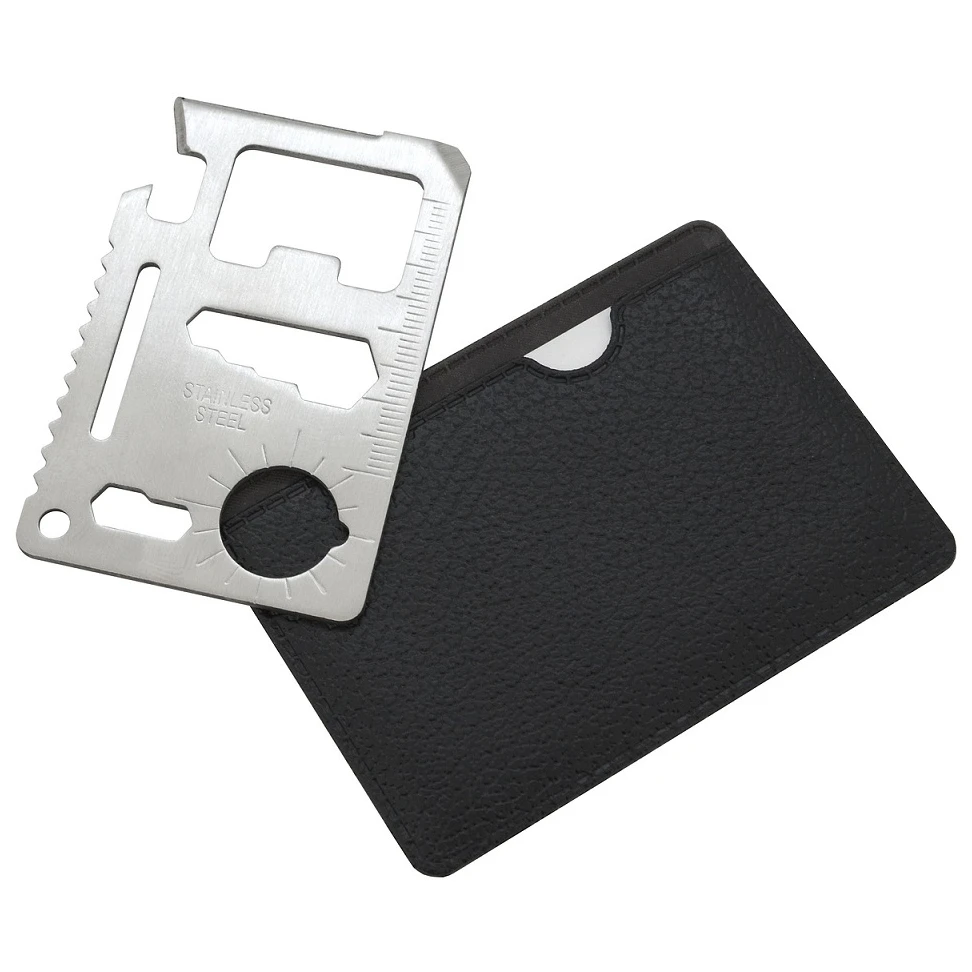 Man weiß nie, was einmal nützlich sein könnte. Dank dem multifunktionalen Survivaltool Cattara Outdoor haben Sie 11 funktionale Werkzeuge für unerwartete Situationen dabei. Und es befindet sich in einer Karte, die kleiner als eine Kreditkarte ist, sodass sie problemlos in jede Brieftasche passt. Sie können es auch an einem Schlüsselband oder Schlüsselanhänger befestigen.