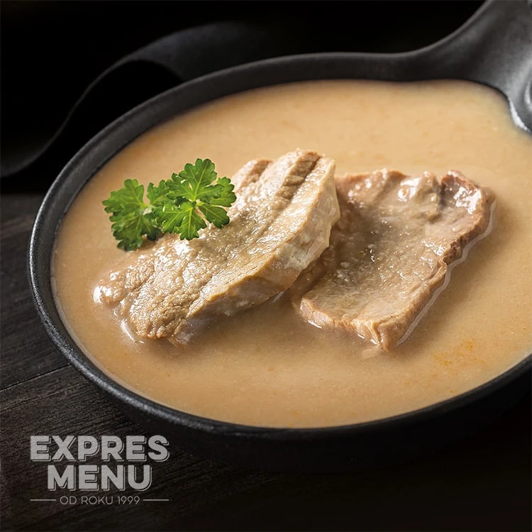 Schweinekeule in Sahnesauce der Firma Expres menu ist eine sehr hochwertige und schmackhafte Hauptspeise.