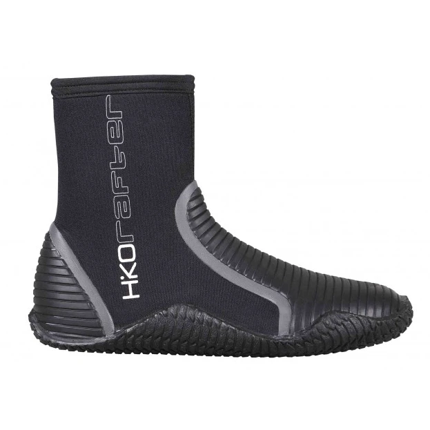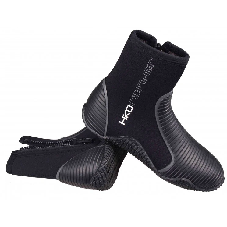 Hoher Neoprenstiefel Hiko Rafter aus 5 mm starkem Neopren mit verstärkter Sohle verfügen über Verstärkungen die Zehen, Ferse und den gesamten Spann schützen. Seitlicher Reißverschluss.