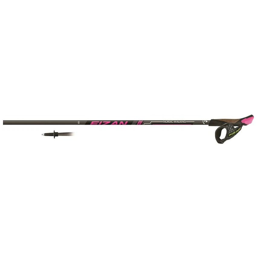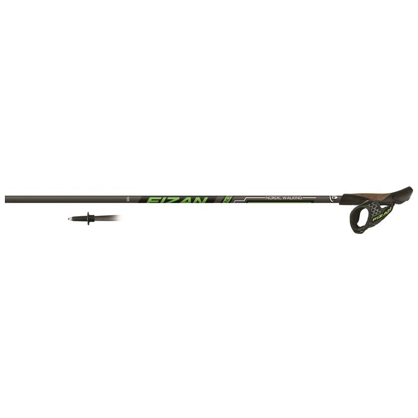 Nordic Walking Stöcke Fizan NW Runner mit 40% Carbon der italienischen Firma Fizan sind für Anfänger und Sportler geeignet, die nicht viel in Stöcke investieren möchten und nicht zu häufig laufen. Es ist eher für Gelegenheitswanderer oder für Personen geeignet, die einer geringeren Gewichtsklasse angehören. Die Stäbchen sind einteilig und verfügen über eine hartmetallbestückte Spitze. Der geformte Kunststoffgriff mit Korkmischung verfügt über einen abnehmbaren Riemen.