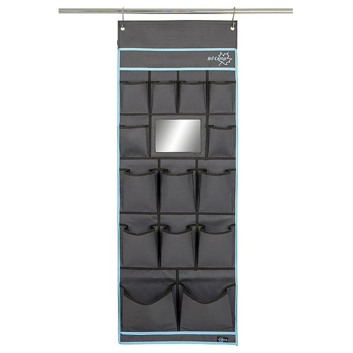 Der Bo-Camp Tent Organizer 14 Mirror ist eine praktische Ergänzung für Ihr Zelt. Es bietet zusätzlichen Stauraum dank 14 Taschen und ist zusätzlich mit einem Spiegel ausgestattet.