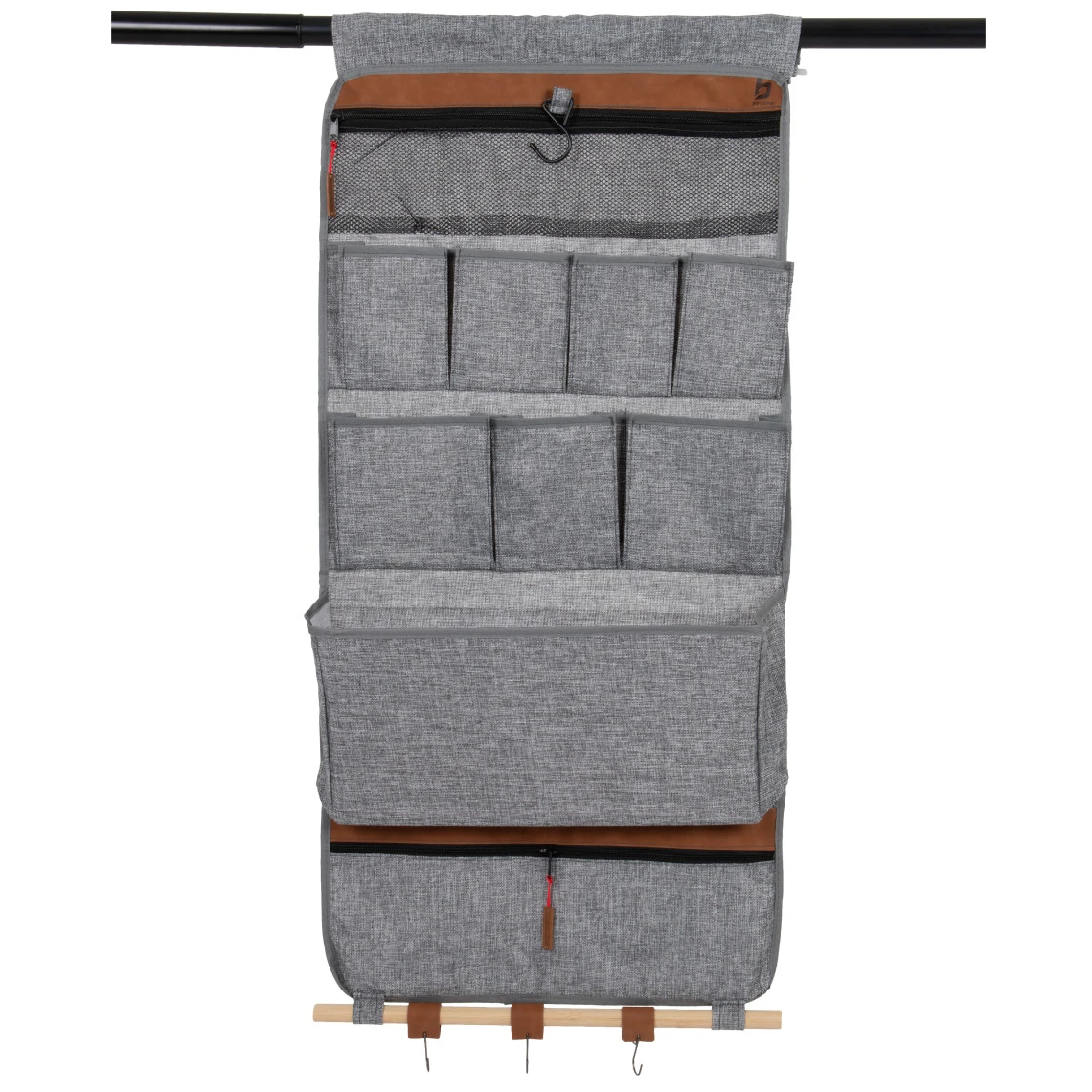 Neben den Fächern werden Sie auch die elastischen Riemen, Haken und den versteckten Stauraum auf der Rückseite zu schätzen wissen. Egal ob Sie es mit Klettverschluss, Klebeband oder Haken aufhängen, es hält fest und zuverlässig.