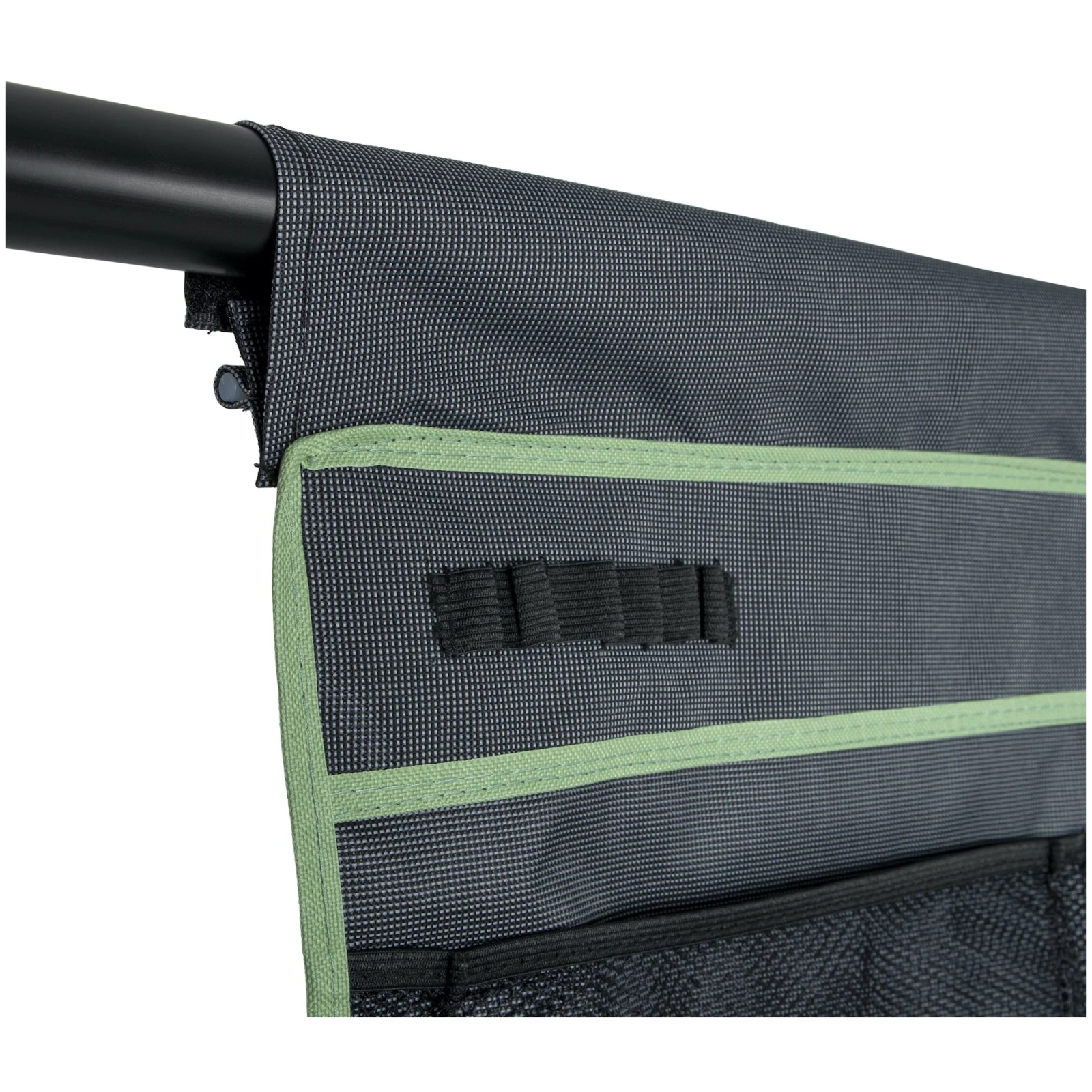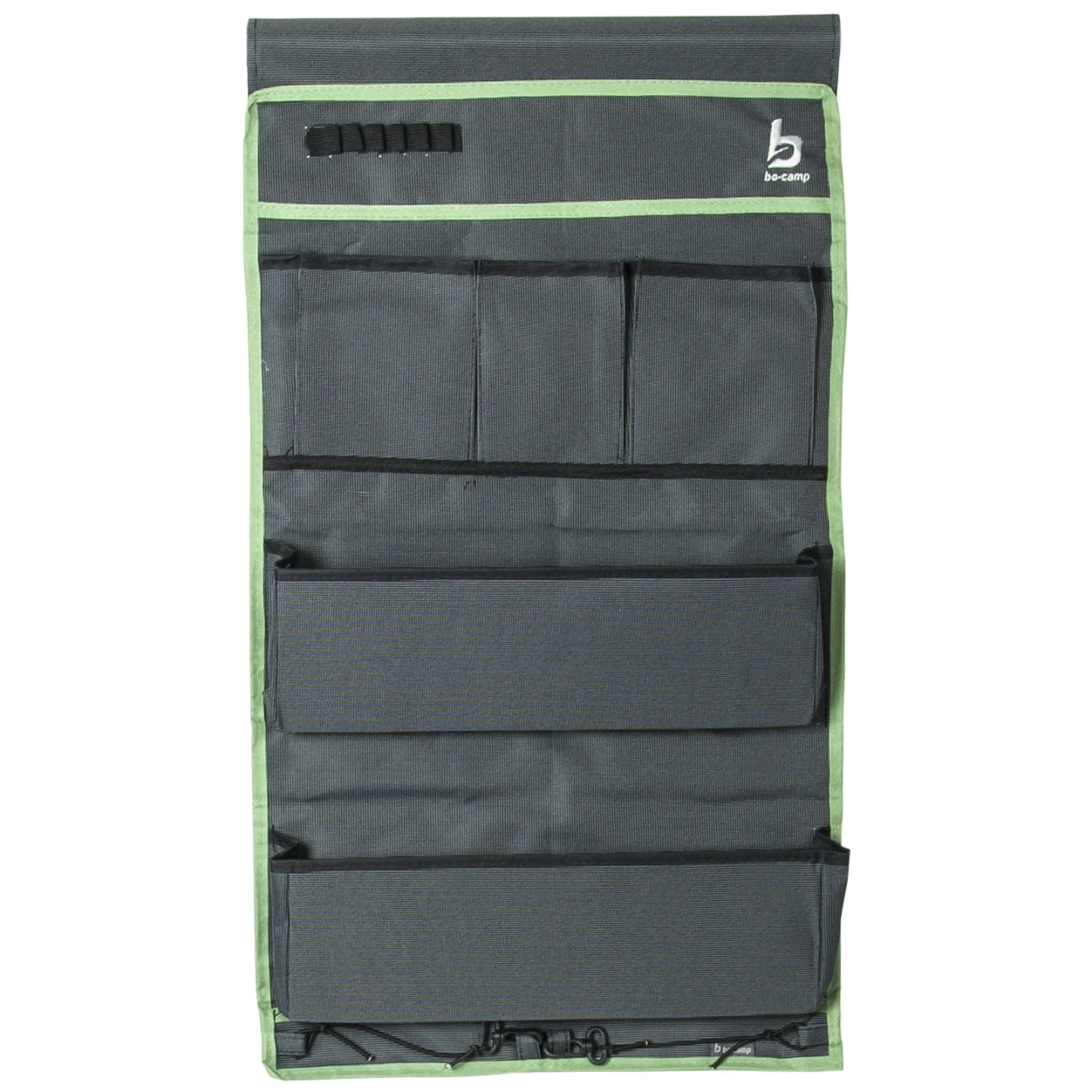 Äußerst stabiler Organizer Organizer 7 Fächer der Firma Bo-Camp mit 7 Fächern. Es verfügt über 2 große und extra stabile Fächer und 4 kleine Fächer. Hergestellt aus hochwertigem zweifarbigem 600D Oxford-Polyester. Einfach und vielfältig montierbar. Diese Gardinenstange kann mit einer Schnur an einer Wohnwagenstange, mit einem Klettverschluss an einer Zeltstange oder mithilfe der Ösen an den Haken aufgehängt werden. Schlaufen an der Unterseite sorgen für zusätzliche Fixierung.