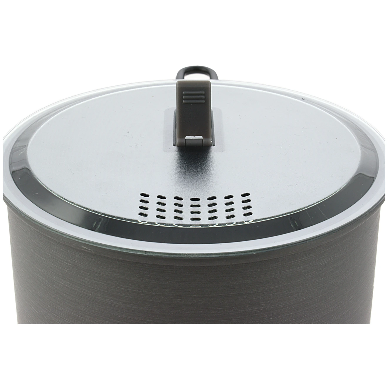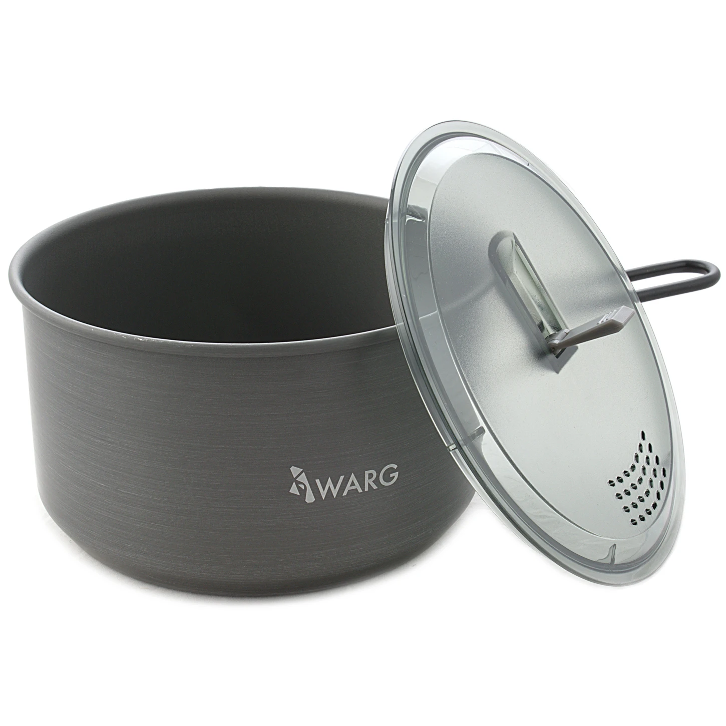 Warg Draco ist der perfekte Wandertopf mit einem Fassungsvermögen von 2 Litern. Es besteht aus hartem, langlebigem eloxiertem Aluminium, das zudem sehr leicht ist. Der Deckel lässt Dampf problemlos aus dem Topf entweichen und dient zugleich als Sieb zum Abgießen von Wasser von Nudeln oder Kartoffeln. Der klappbare Griff ist mit einer Silikonschicht überzogen, die vor Verbrennungen beim Nehmen des Gefäßes von der Flamme schützt. Im Lieferumfang ist außerdem eine praktische Transporttasche enthalten, die den Topf vor Kratzern und Verschmutzungen durch andere Gegenstände im Rucksack schützt.