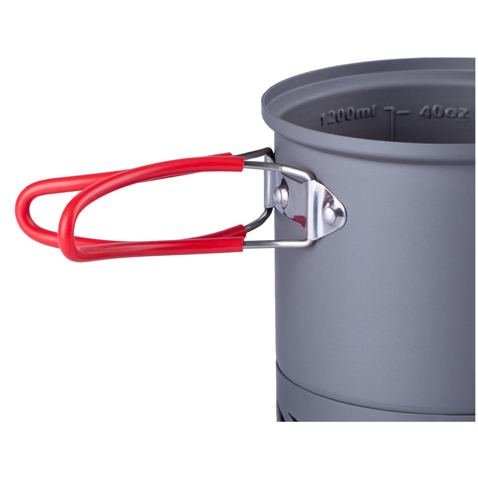 Dank Wärmetauscher verkürzt sich Ihre Kochzeit um bis zu 30 %, was auch den Brennstoffverbrauch senkt. Im Lieferumfang ist eine praktische Schrumpffolie enthalten, die das Geschirr zusammenhält und andere Gegenstände im Rucksack vor Verschmutzung schützt.