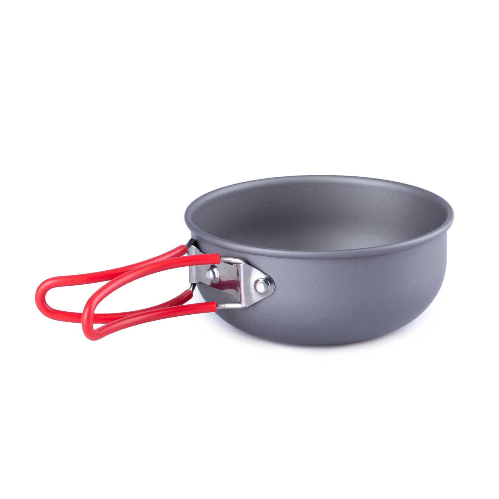 Das Ikati Kochgeschirr-Set Zulu hat eine eloxierte Schicht auf der Oberfläche mit einer feuerfesten und abriebfesten Oberfläche. Im Set enthalten sind ein größeres und ein kleineres Gefäß, die als Deckel verwendet werden können. In das Set passen bequem eine 230 g Gaskartusche und ein kleiner Kocher, was deutlich Platz im Rucksack spart. Zum einfachen Entfernen von der Flamme ist jedes Teil mit klappbaren Griffen mit hitzebeständiger Silikonbeschichtung ausgestattet.